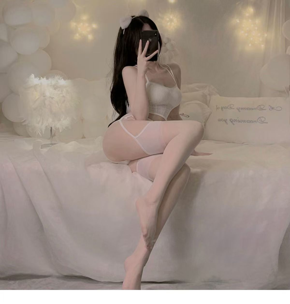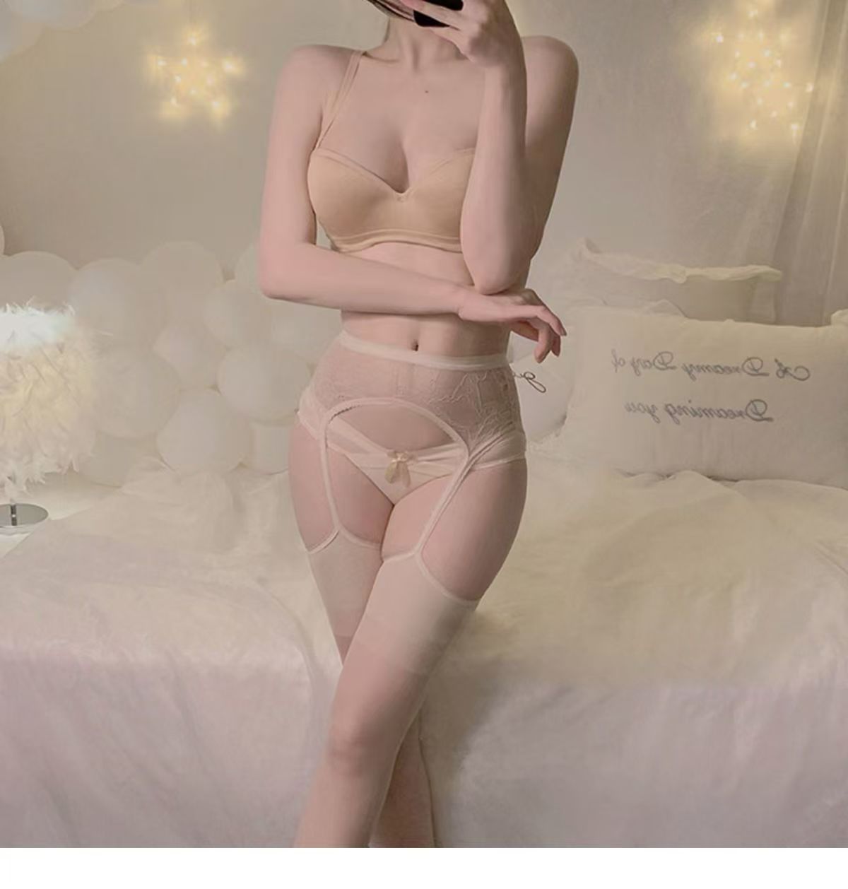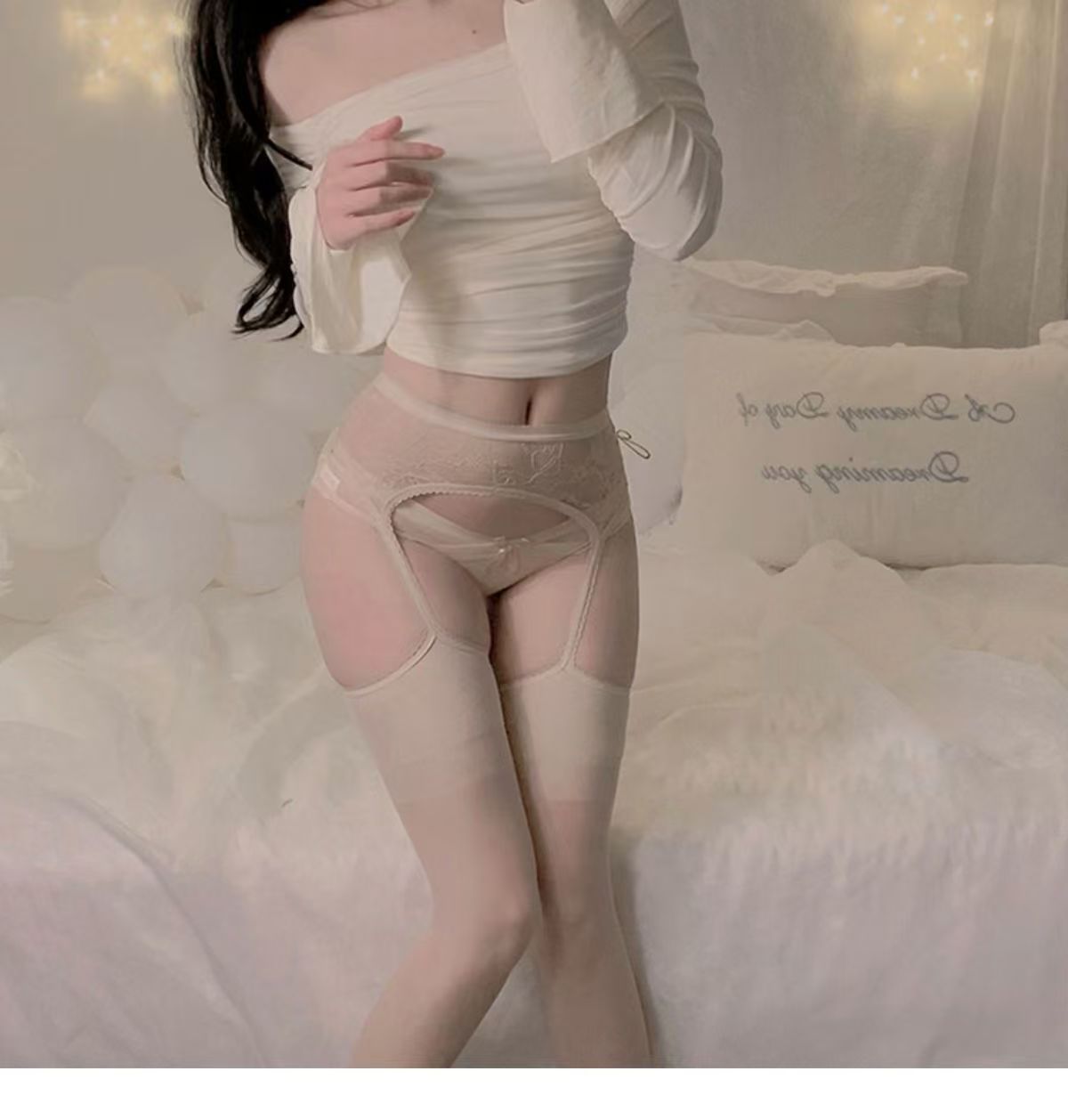 • 흰색 실크 레이스 원피스 가터 스타킹