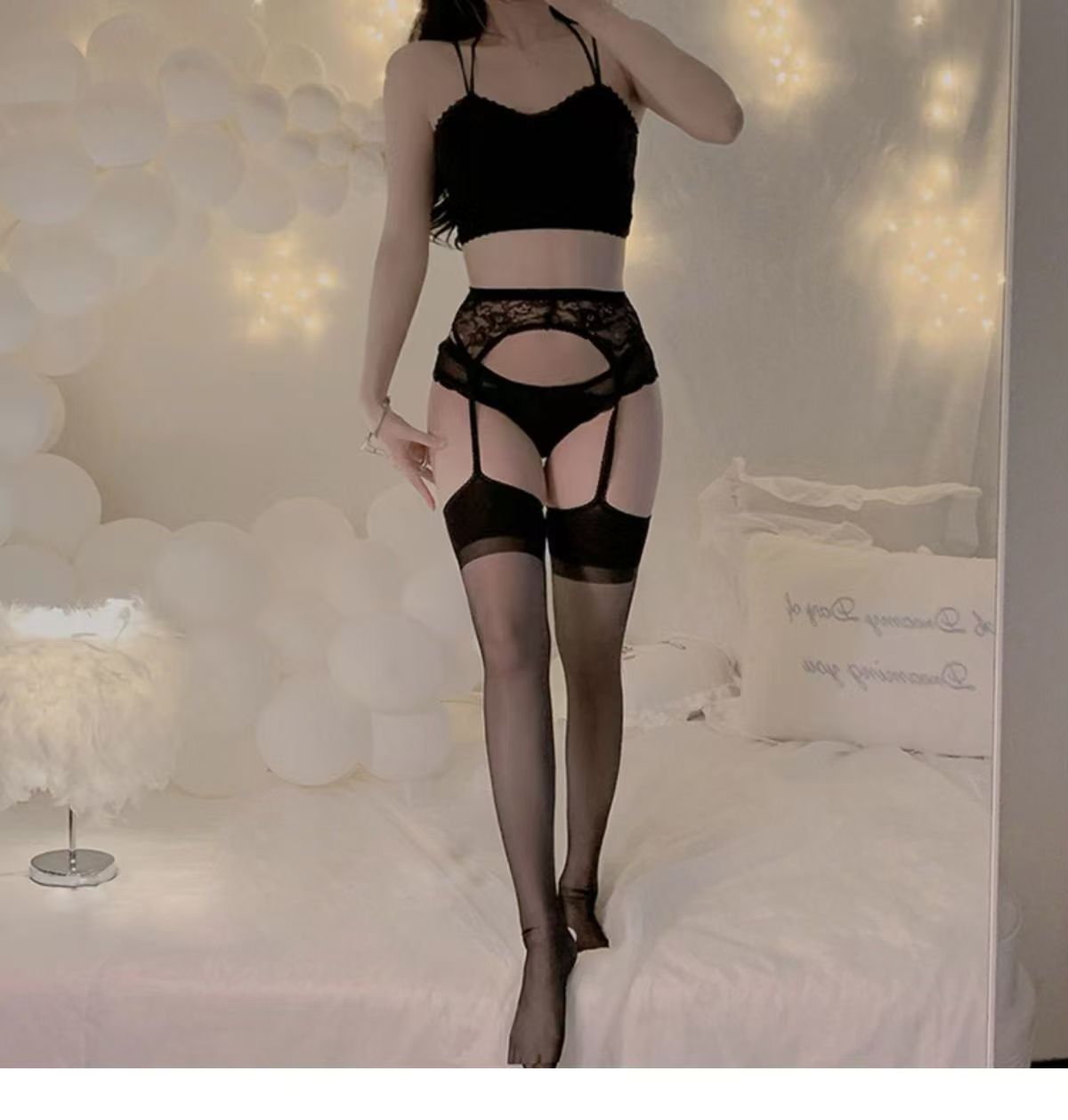 • 레이스 원피스 가터 스타킹 블랙 실크
