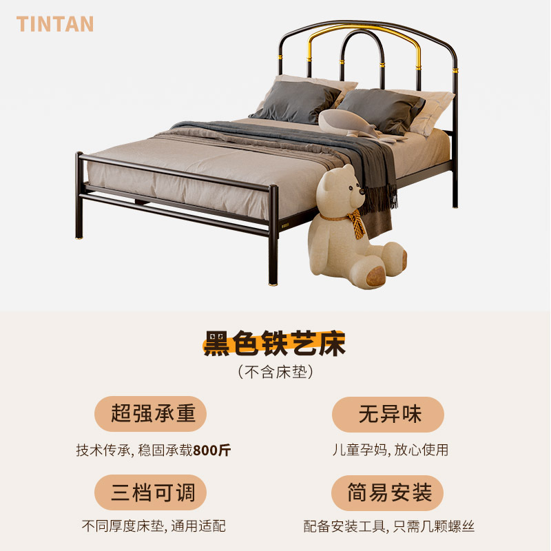 가구 단철 침대 두꺼운 강화 싱글 더블 침대 현대적인 미니멀리스트 금속 빛 럭셔리 철 선반 s^스토어 가기