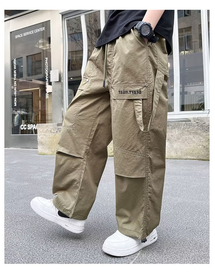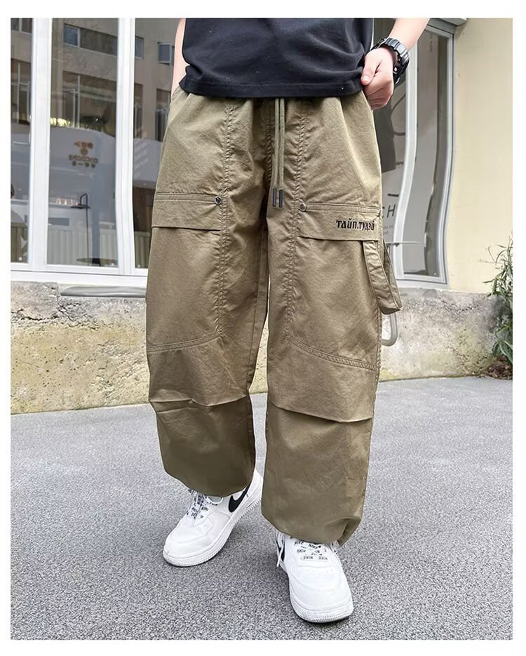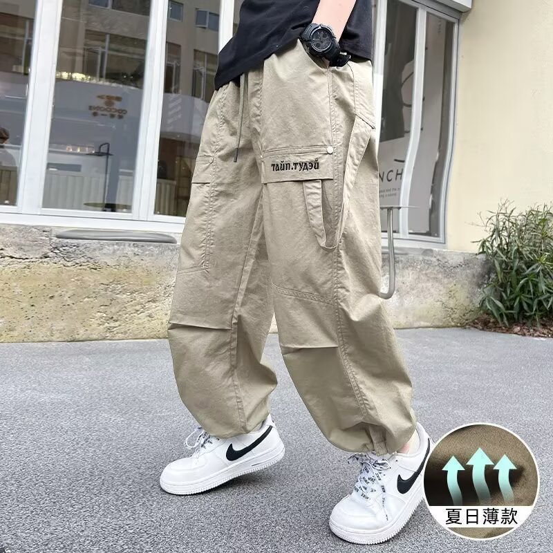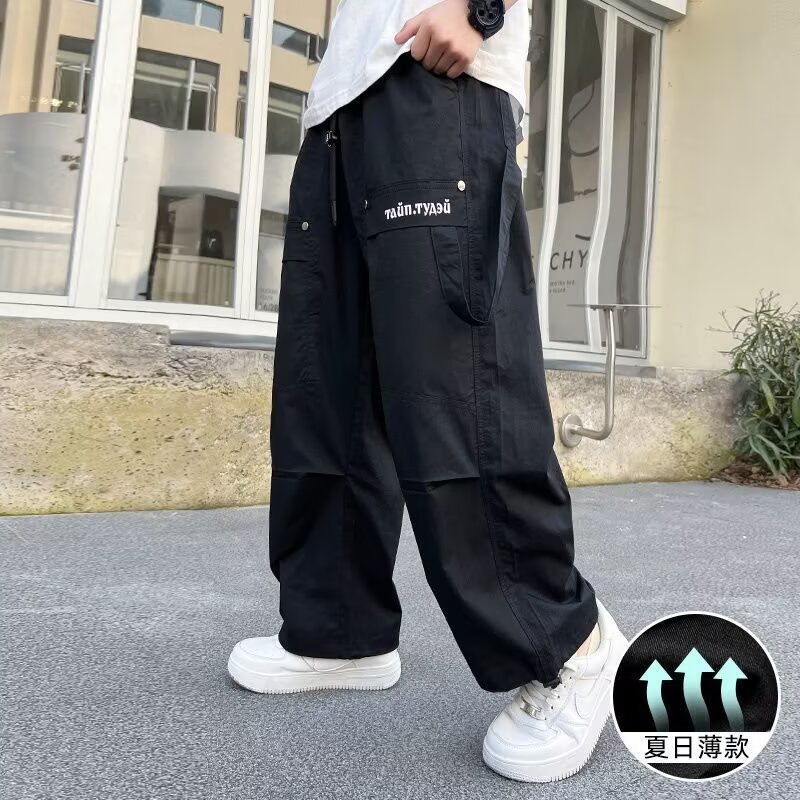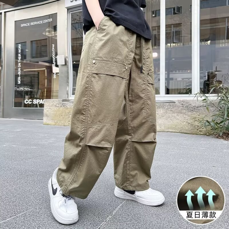 여름 소년 캐주얼 바지 2025 새로운 스타일 소년 중 큰 아이들 잘 생긴 느슨한 넓은 다리 바지 십대 바지스토어 가기