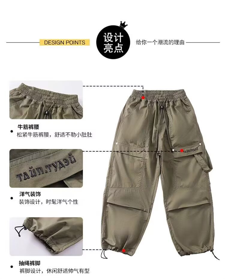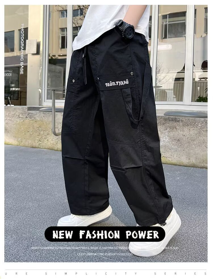 여름 소년 캐주얼 바지 2025 새로운 스타일 소년 중 큰 아이들 잘 생긴 느슨한 넓은 다리 바지 십대 바지