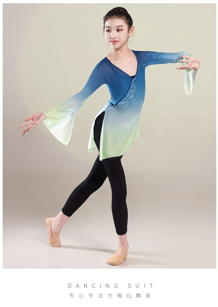 아동용 고전무용 연습복, 소녀용 중국무용 공연복, 민속무용복, 아동용 바디댄스