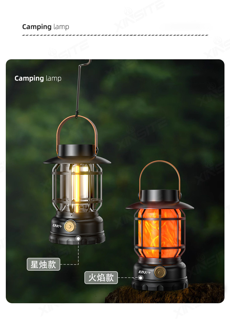 레트로 태양 충전 캠핑 램프 캠핑 램프 야외 긴 내구성 분위기 조명 듀얼 라이트 휴대용 램프 텐트 램프