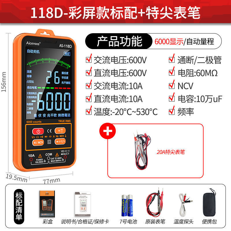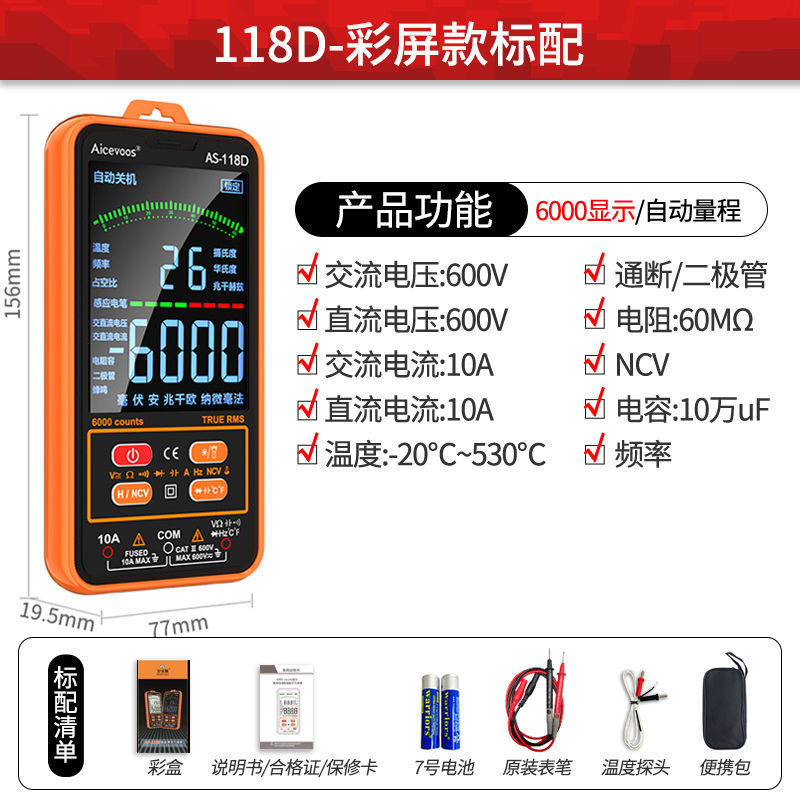 Aiwo 고정밀 디지털 멀티미터 전기 기사 완전 자동 지능형 유지 보수 휴대용 화상 방지스토어 가기