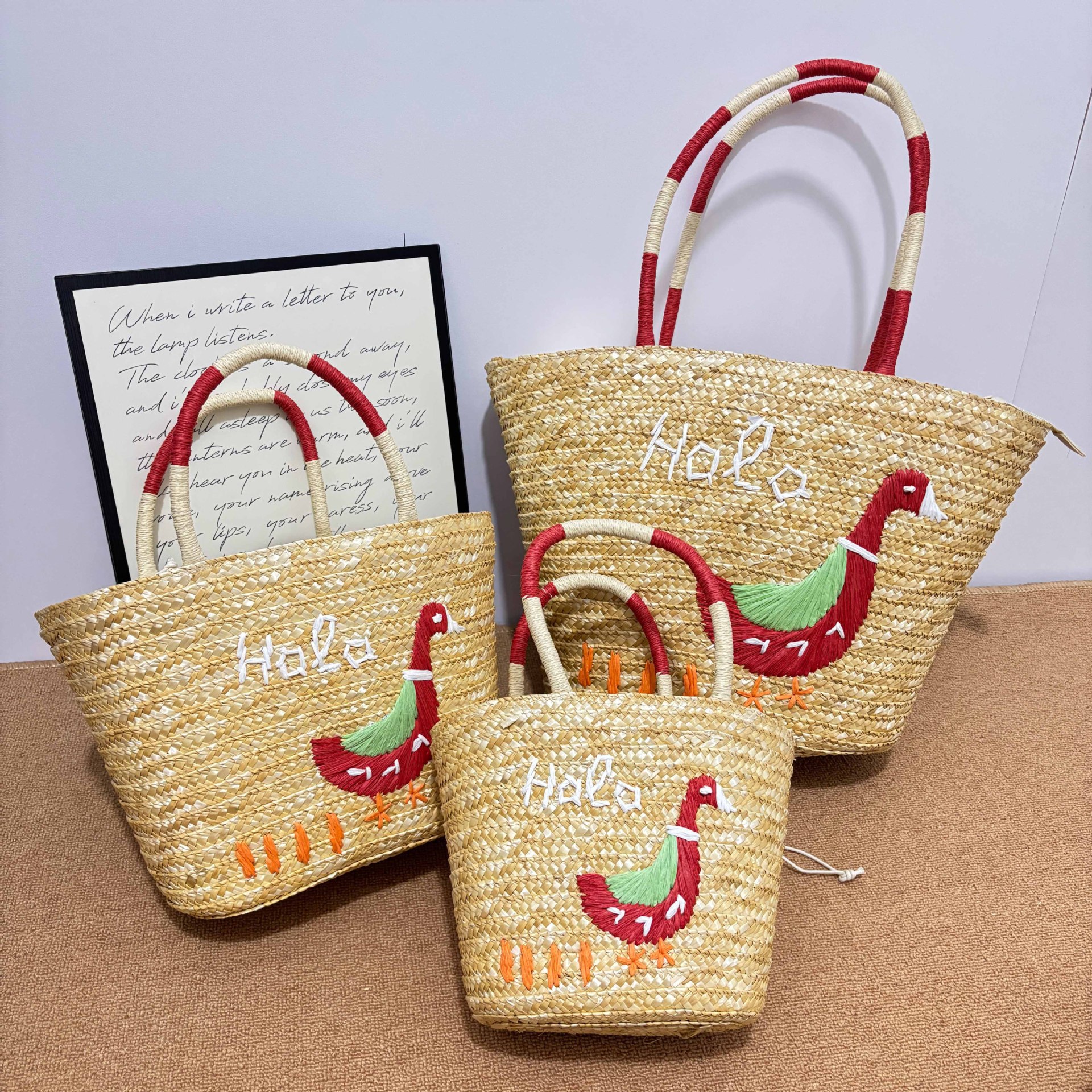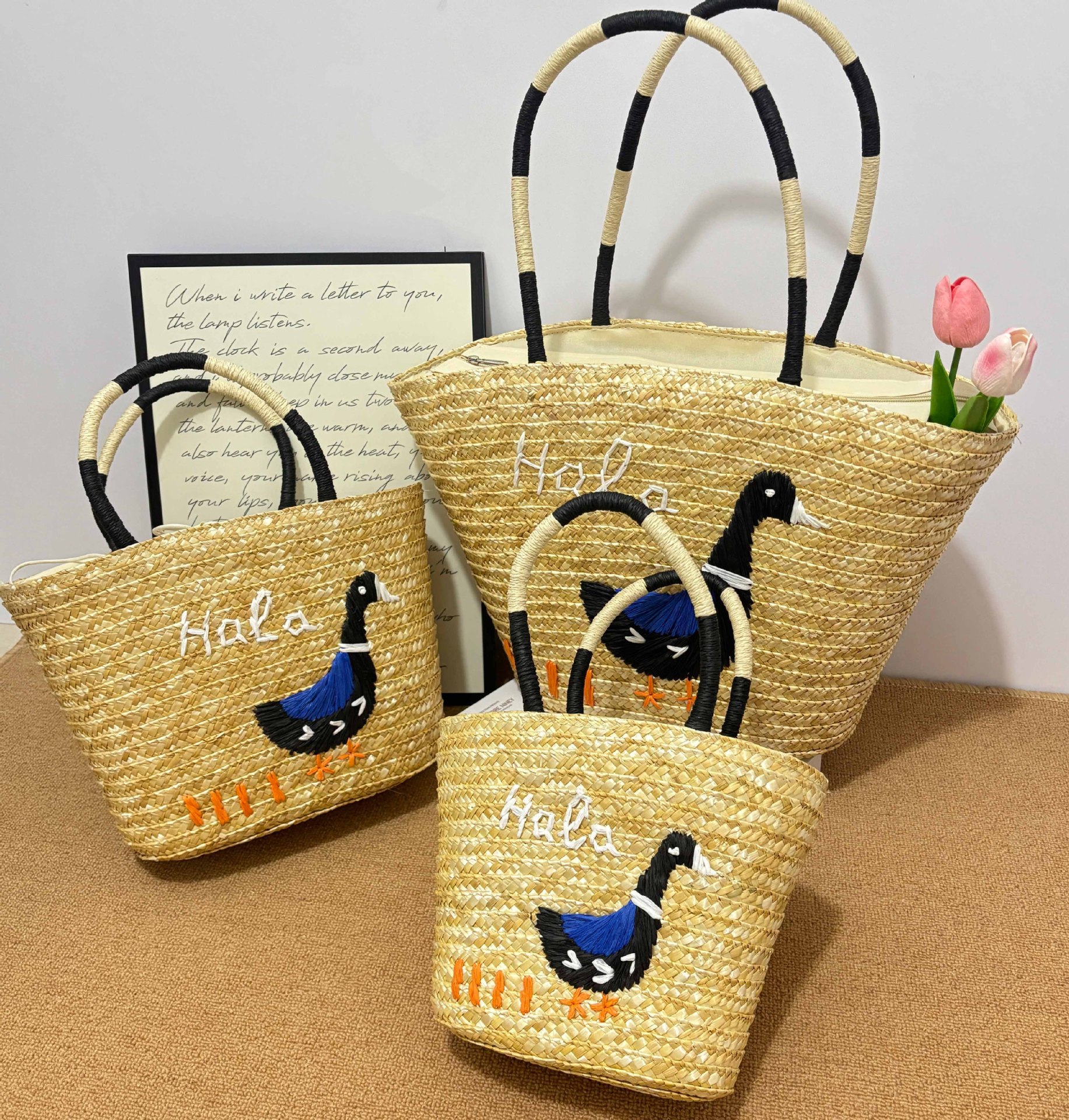 재고 여름 새로운 해변 여행 귀여운 작은 오리 짠 가방 대용량 어깨 가방 야채 바구니 핸드백