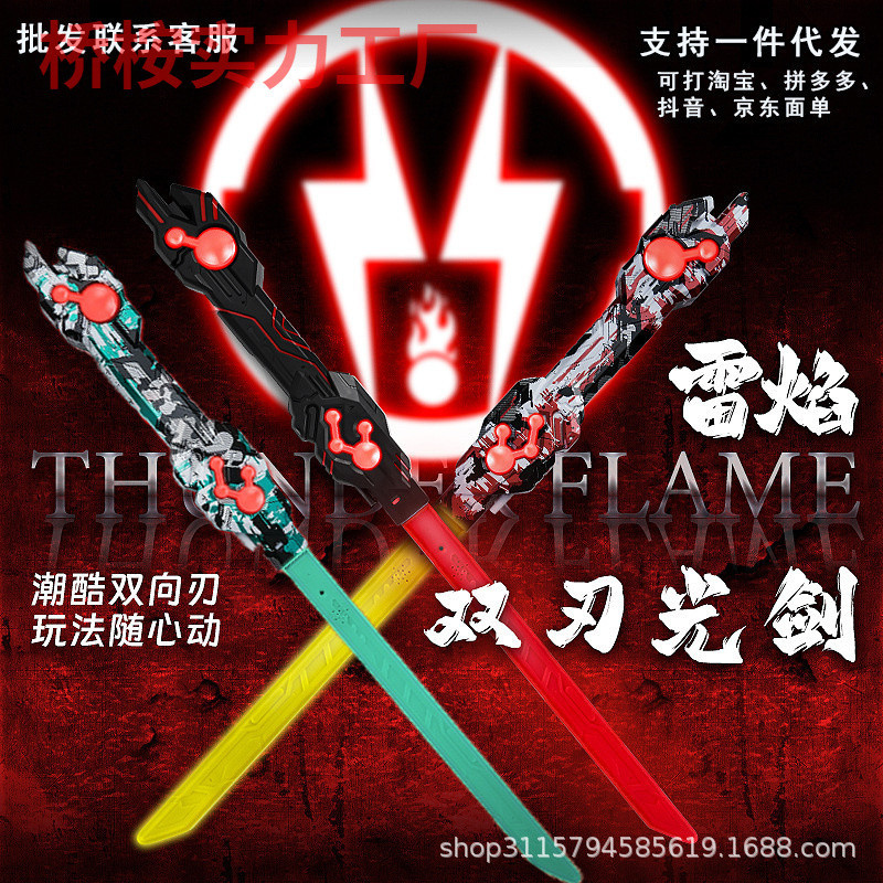 천둥 불꽃 스쿠터 어린이 행성 레이저 검 전쟁 더블 헤드 투인원 멋진 망원경 빛나는 검 소년 장난감