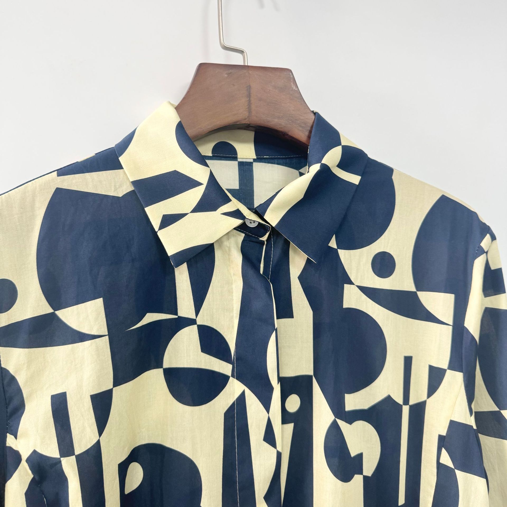 IC25 봄과 여름 새로운 간단한 캐주얼 주름 방지 면 인쇄 된 직물 중간 길이 원피스스토어 가기