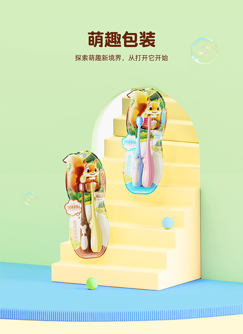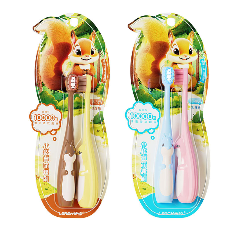 2 팩 Le Tooth Squirrel 어린이 칫솔 3-9 세 연약한 머리 변화 기간 10 만 머리 어린이 칫솔 도매 유아