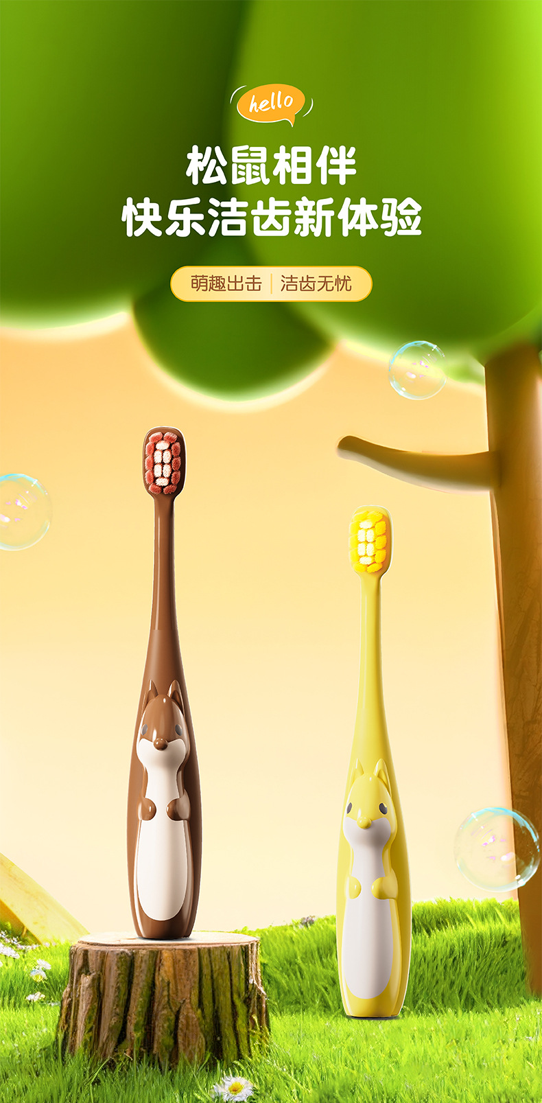 2 팩 Le Tooth Squirrel 어린이 칫솔 3-9 세 연약한 머리 변화 기간 10 만 머리 어린이 칫솔 도매 유아스토어 가기