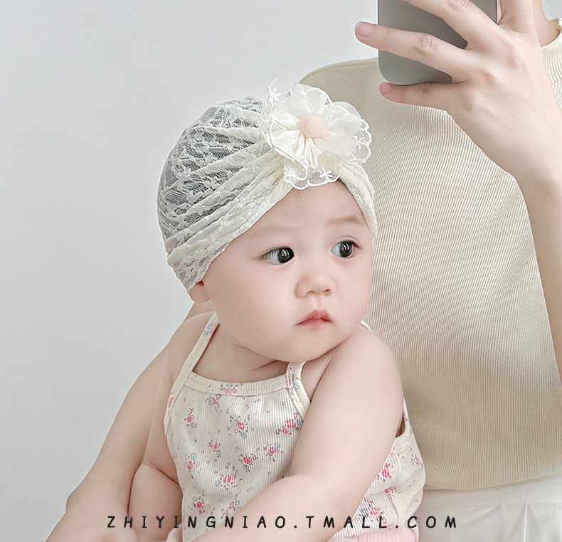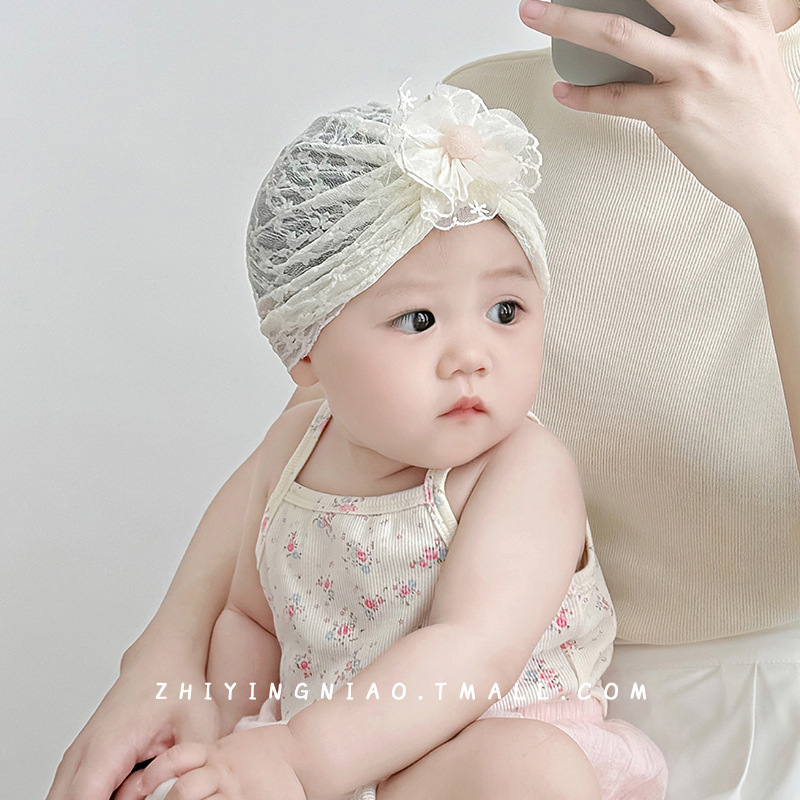 아기 모자 여름 얇은 신생아 태아 모자 아기 인도 모자 작은 월간 레이스 순수 코튼 레이스 공주 모자스토어 가기