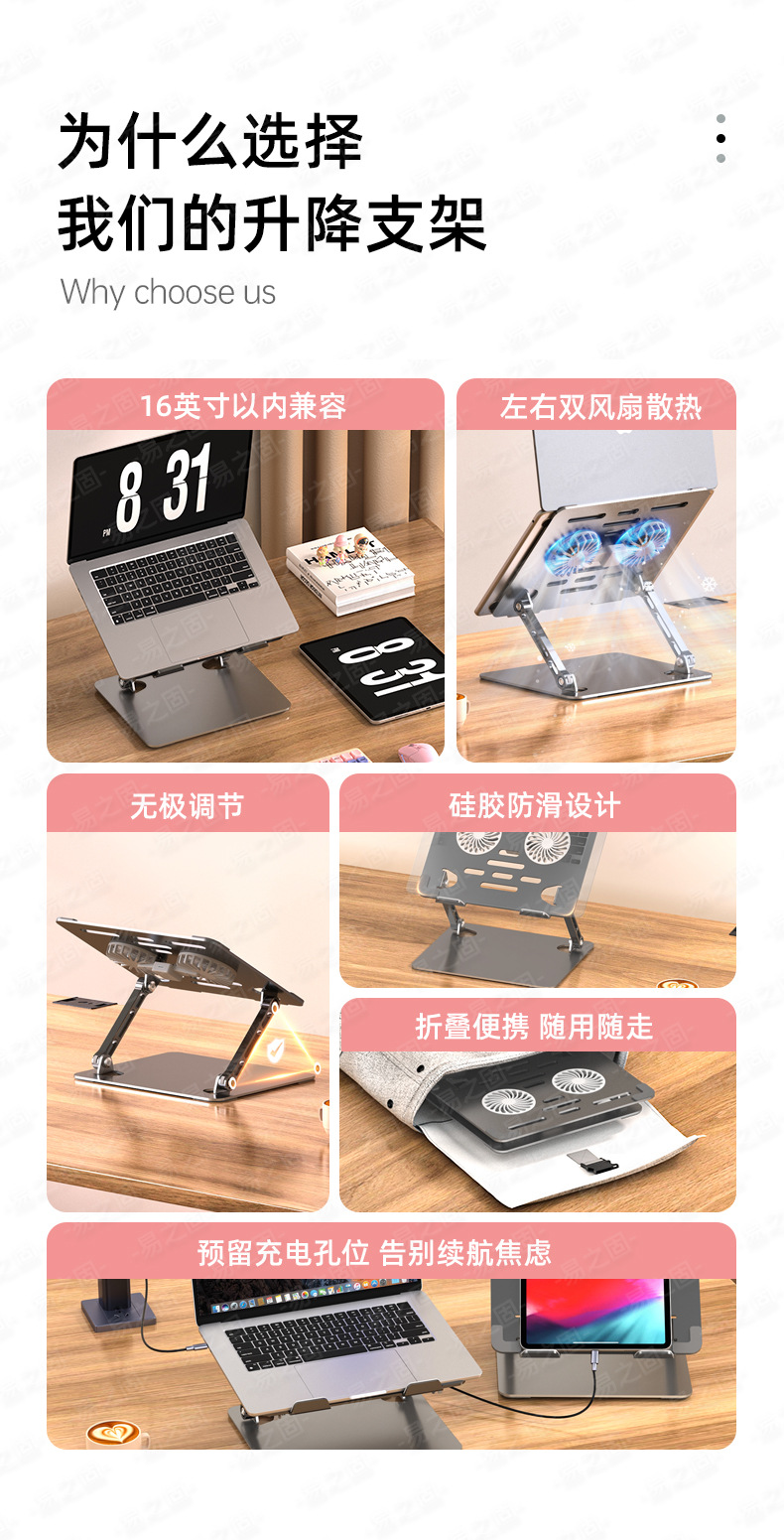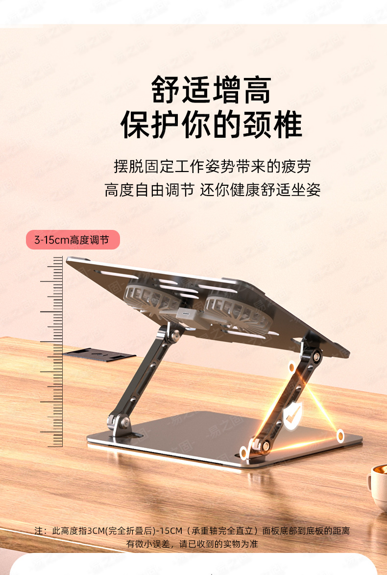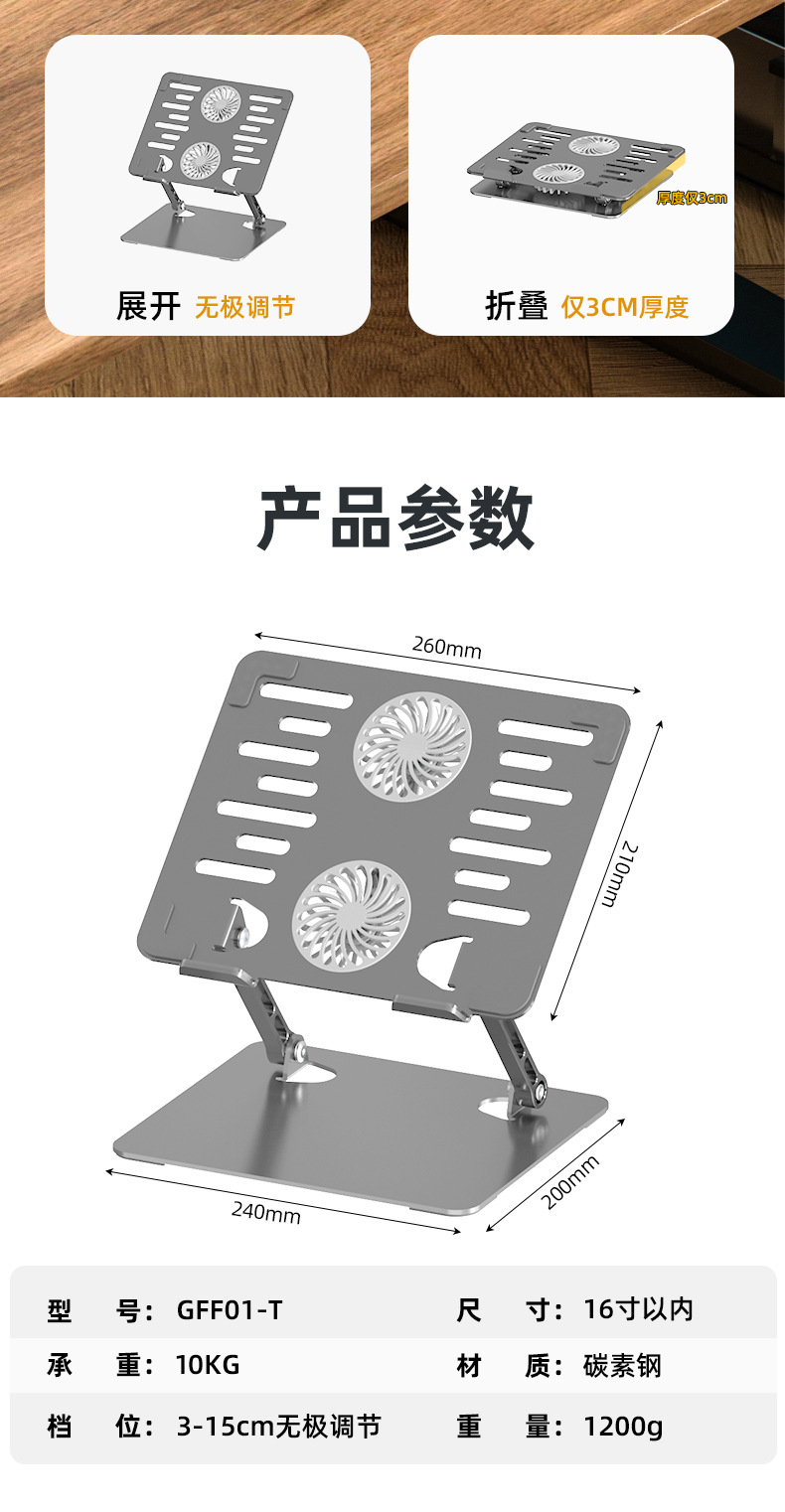 노트북 스탠드 브래킷 데스크탑 플러스 높이 라디에이터 접이식 휴대용 지지대 공중에 놓인 수직 조정