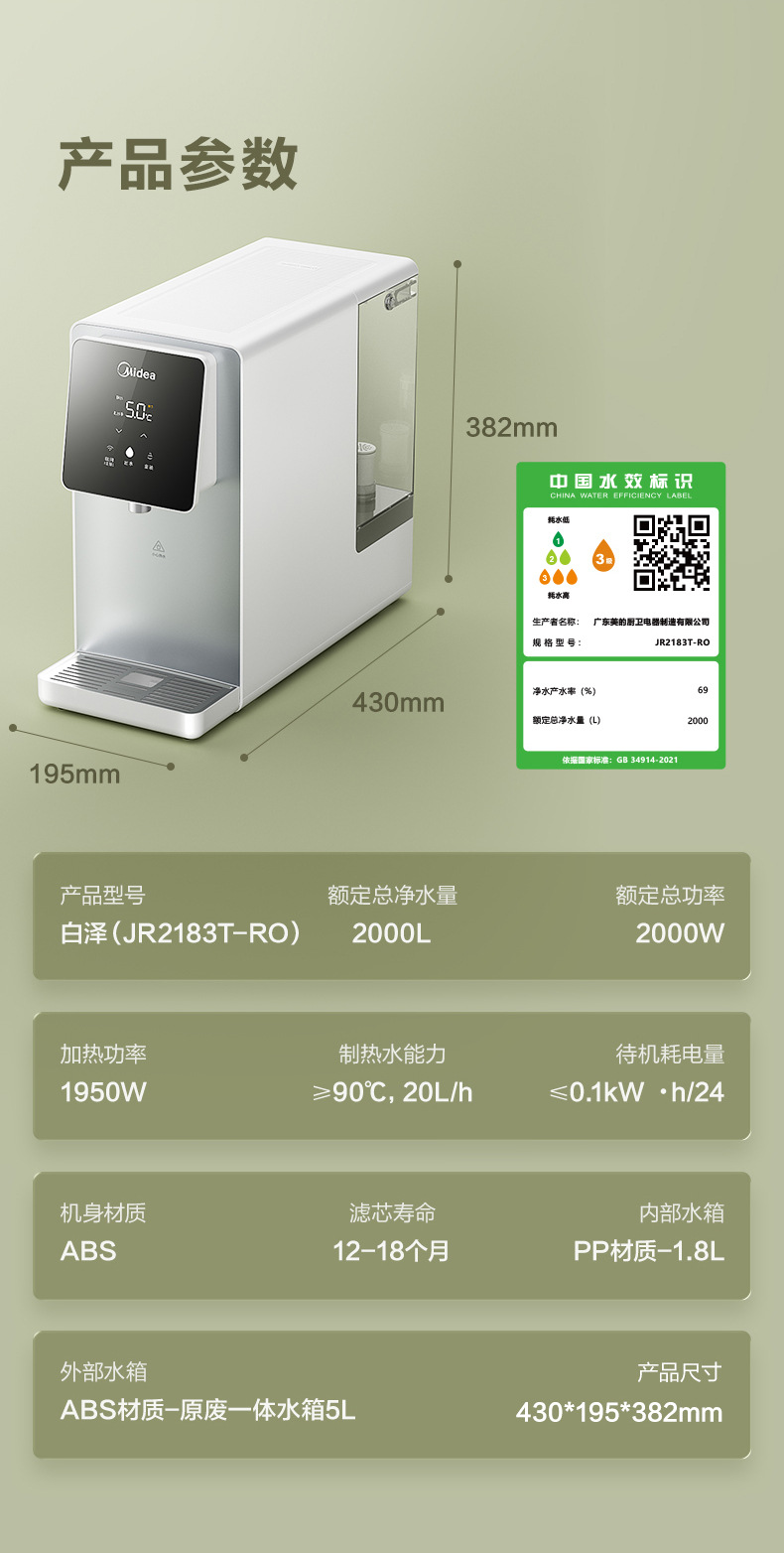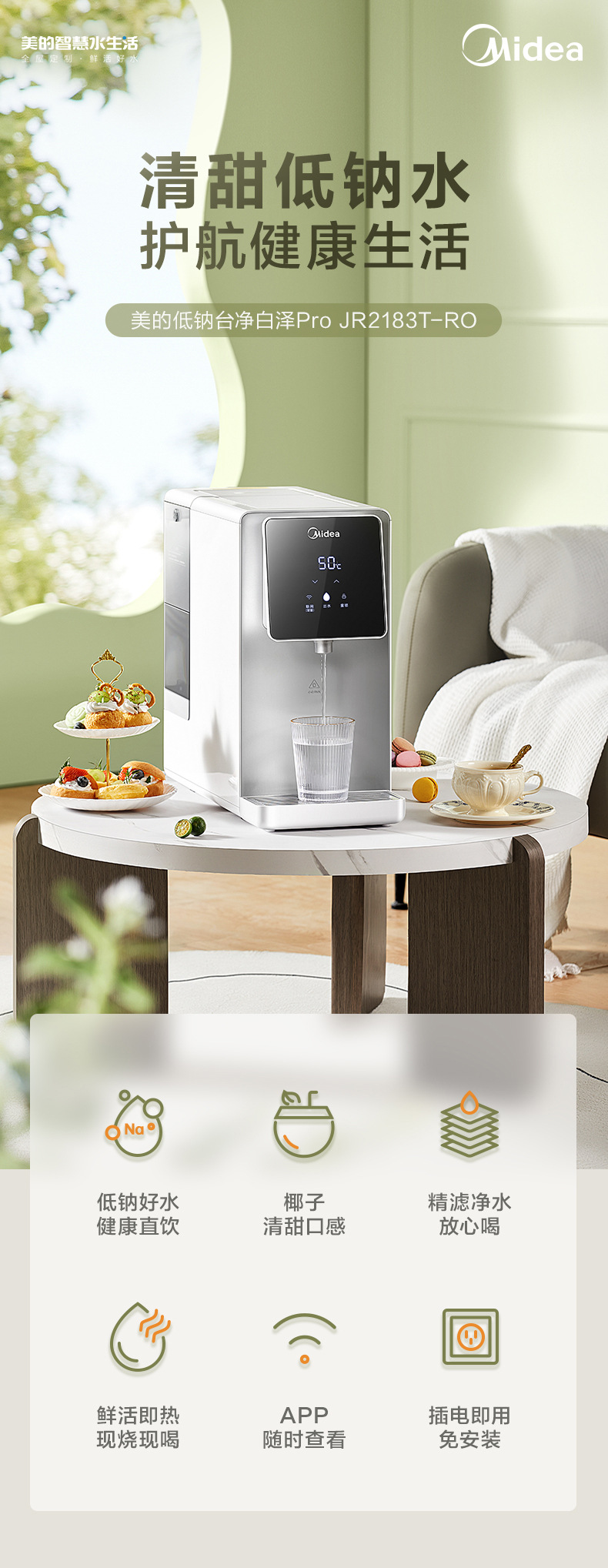 미디어 백제 탁상형 온수 정수기 가정용 즉시 가열 직수형 정수기 JR2183T-RO
