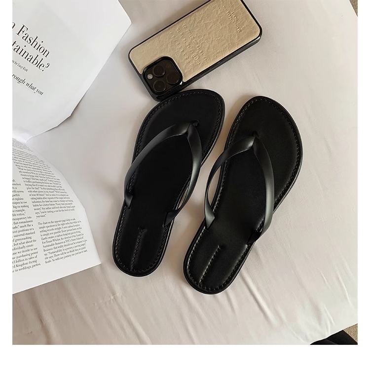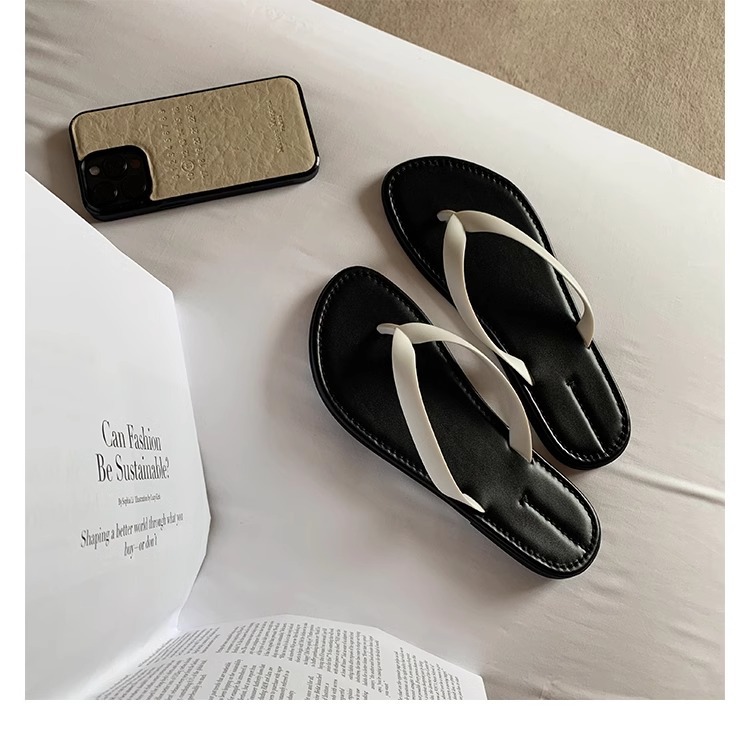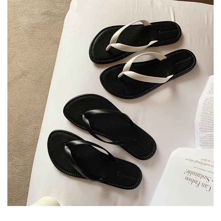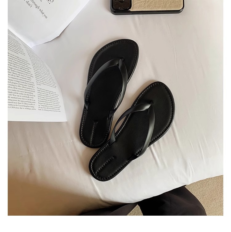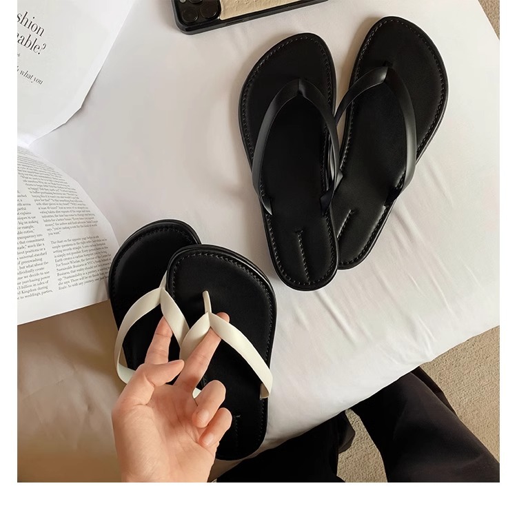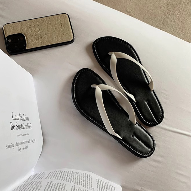 프랑스 스타일 간단한 플립 플롭 여성 여름 의상 요정 스타일 플립 플롭 발가락 클립 슬리퍼 편안한 레저 홀리데이 비치 샌들