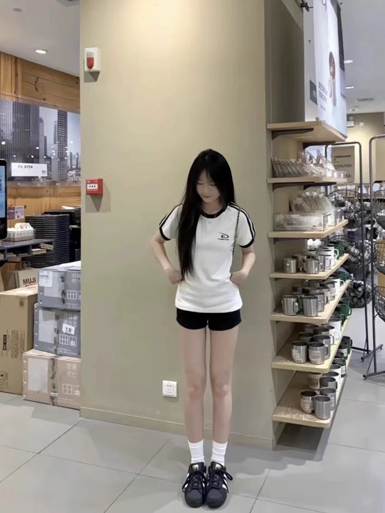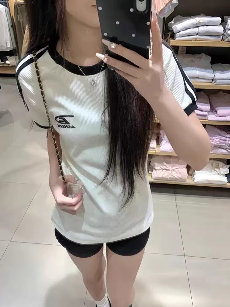 미국식 3 바 편지 어깨 퓨어 코튼 화이트 반팔 티셔츠 여성용 여름 새로운 슬림 핏 슬림 핏 쇼트 탑스토어 가기