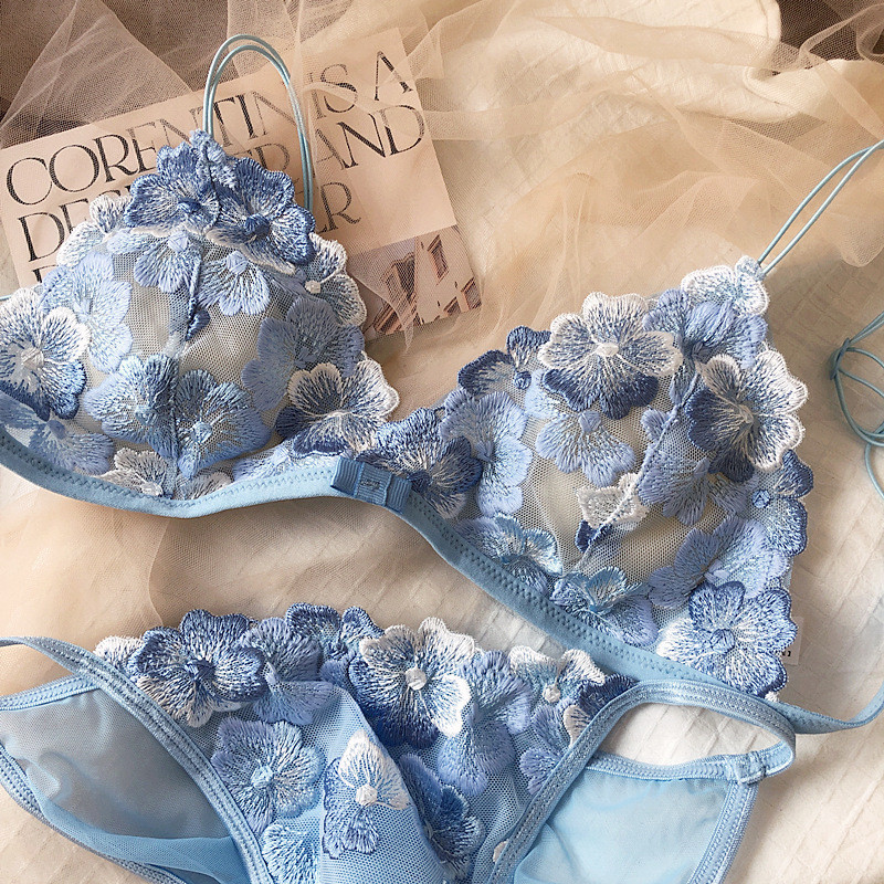 프렌치 섹시 브라렛, 아름다운 등, 얇은 스트랩, 작은 가슴 레이스 브라, 와이어 프리 초박형 트라이앵글 컵 속옷 세트스토어 가기