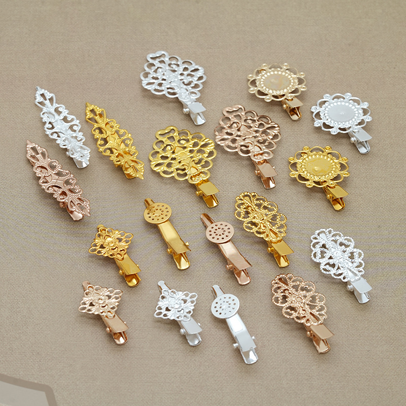 새로운 철 꽃 타원형 덕빌 클립 샹윤 헤어핀 패션 골동품 나비 다이아몬드 헤어핀 헤어 액세서리 골드 및 실버 헤어핀