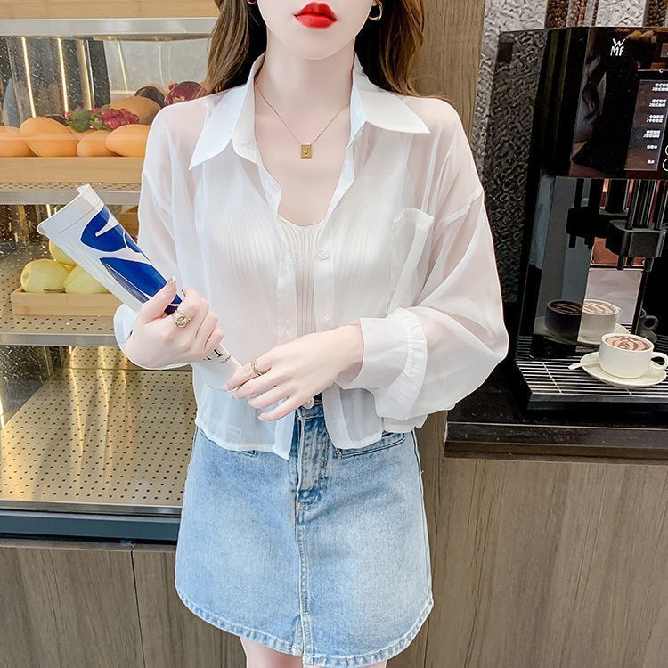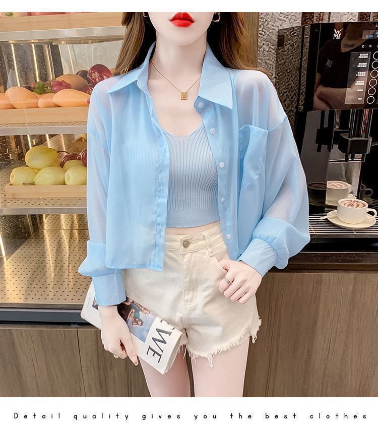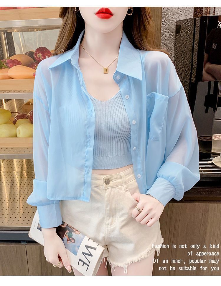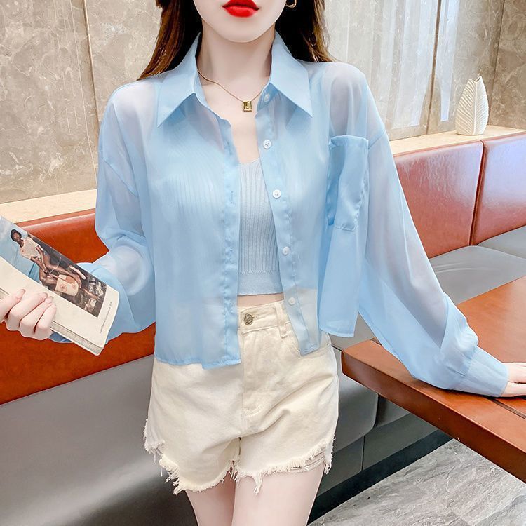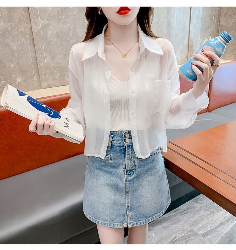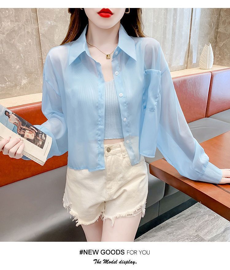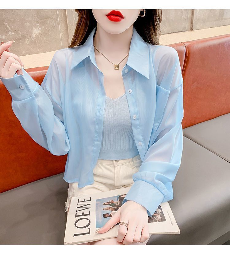 여자 여름 캐주얼 2025 스몰 사이즈 새 올매치 쇼트 긴팔 셔츠스토어 가기