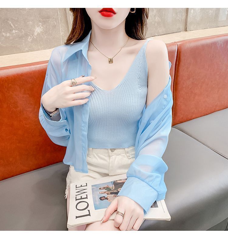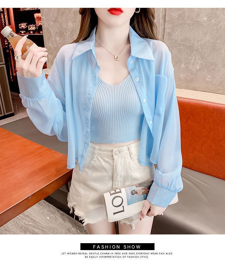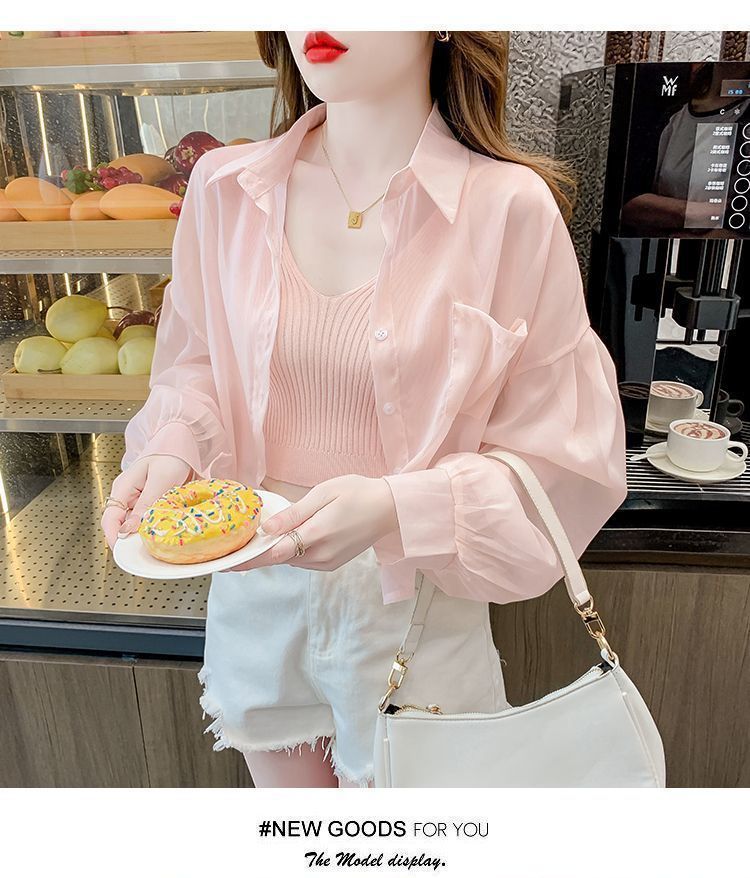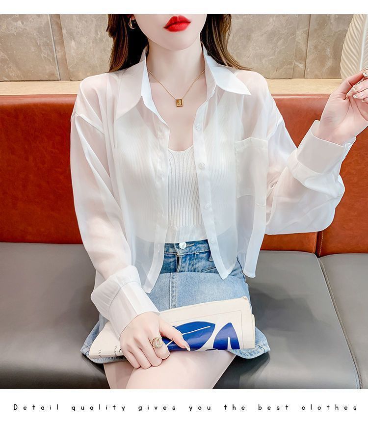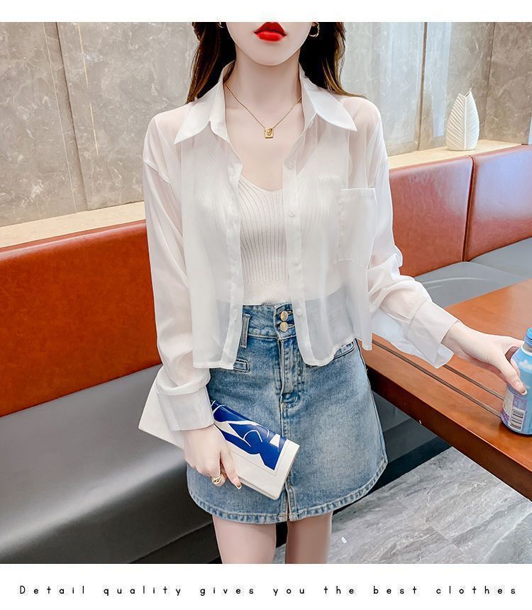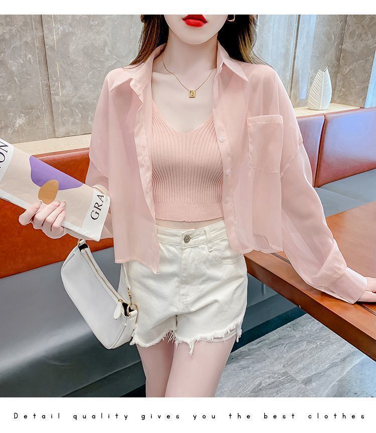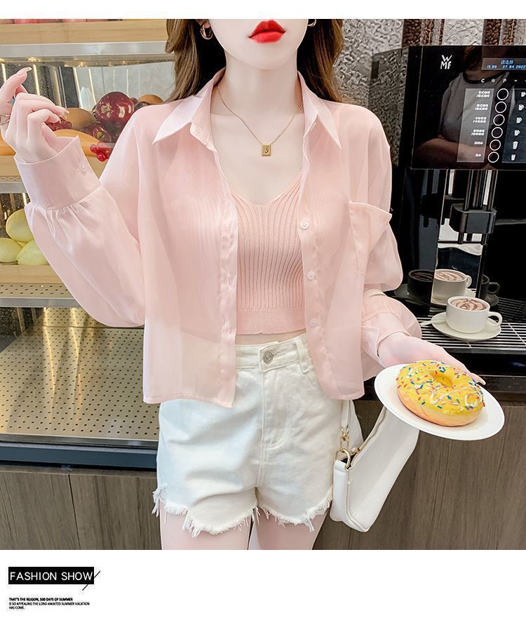 여자 여름 캐주얼 2025 스몰 사이즈 새 올매치 쇼트 긴팔 셔츠스토어 가기