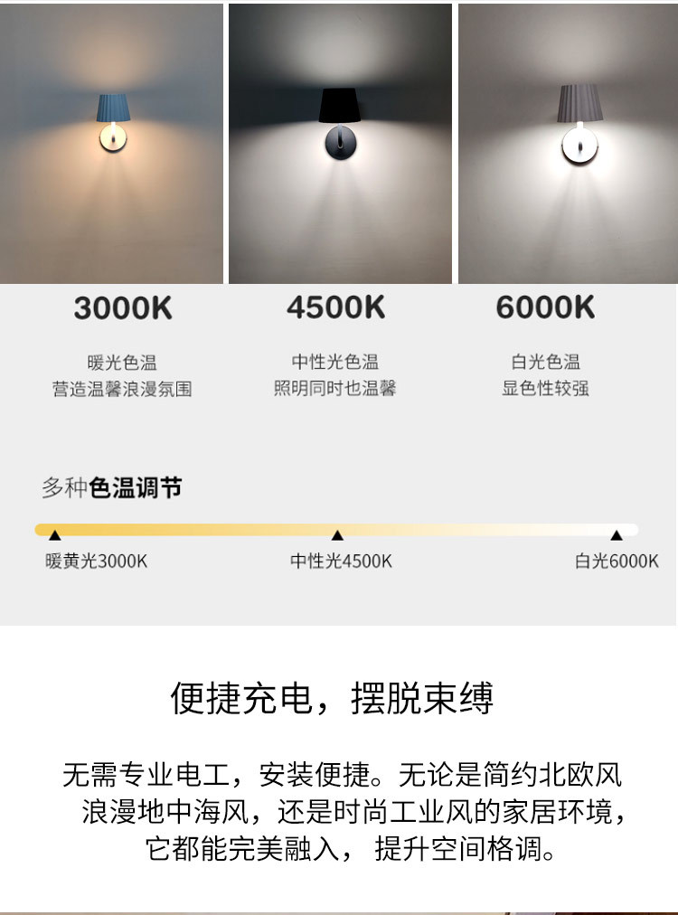 국경 간 새로운 분위기 램프 충전식 벽 램프 거실 간단한 현대 창조적 인 장식 머리맡 램프 이동식 야간 조명