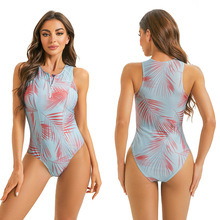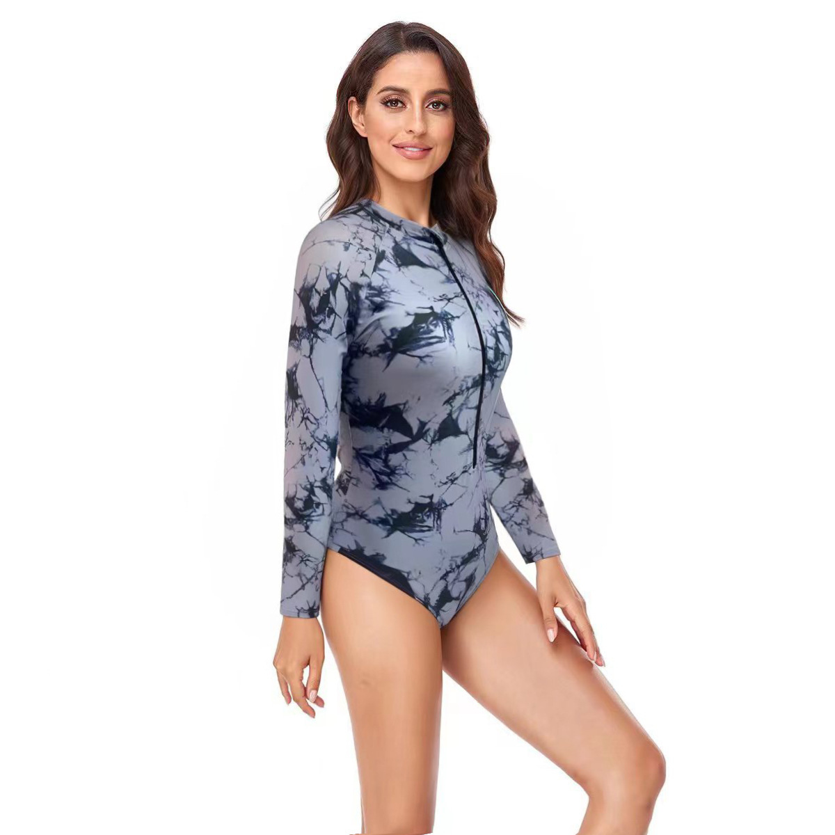 유럽과 미국의 새로운 원피스 지퍼 스포츠 수영복 여성 긴팔 서핑 수영복 자외선 차단 서핑 슈트 삼각형 수영복
