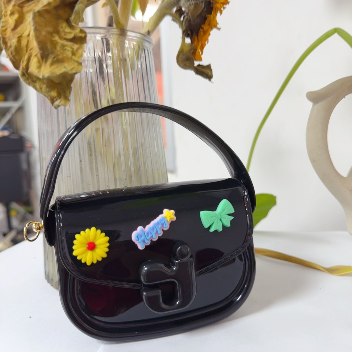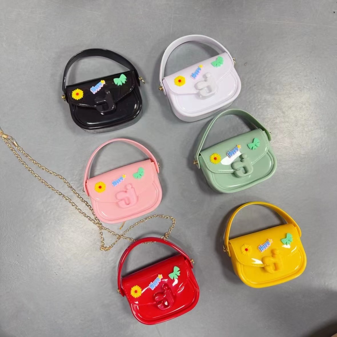 2025 국경 간 새로운 뜨거운 판매 j 문자 젤리 가방 휴대용 어깨 대각선 어린이 여성 가방 PVC 가방 동전 지갑
