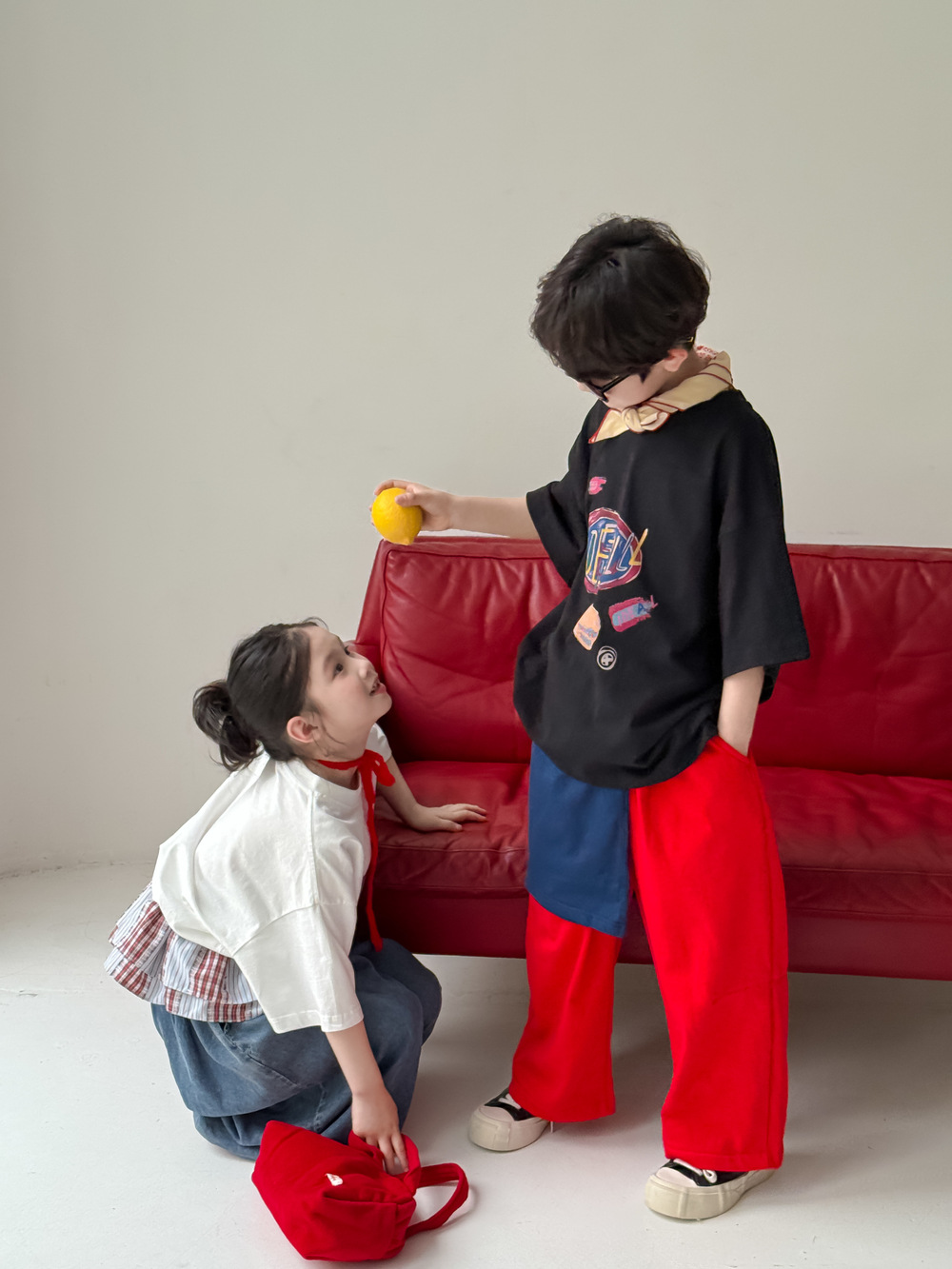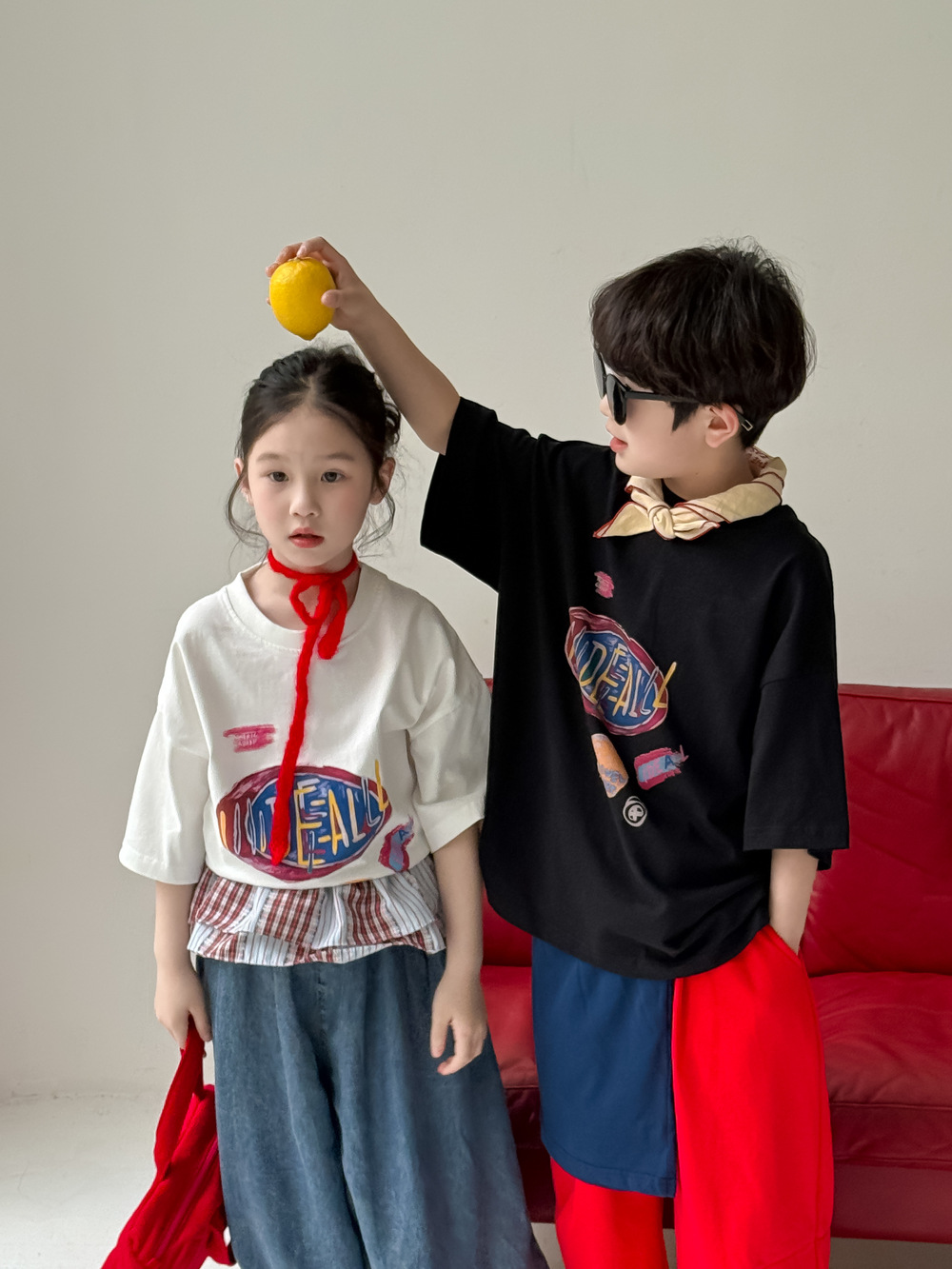 어린이 티셔츠 2025 여름 한국식 만화 편지 인쇄 반팔 어린이 둥근 목 캐주얼 루즈 탑 소년 소녀