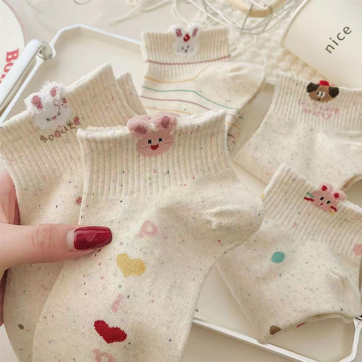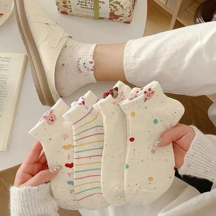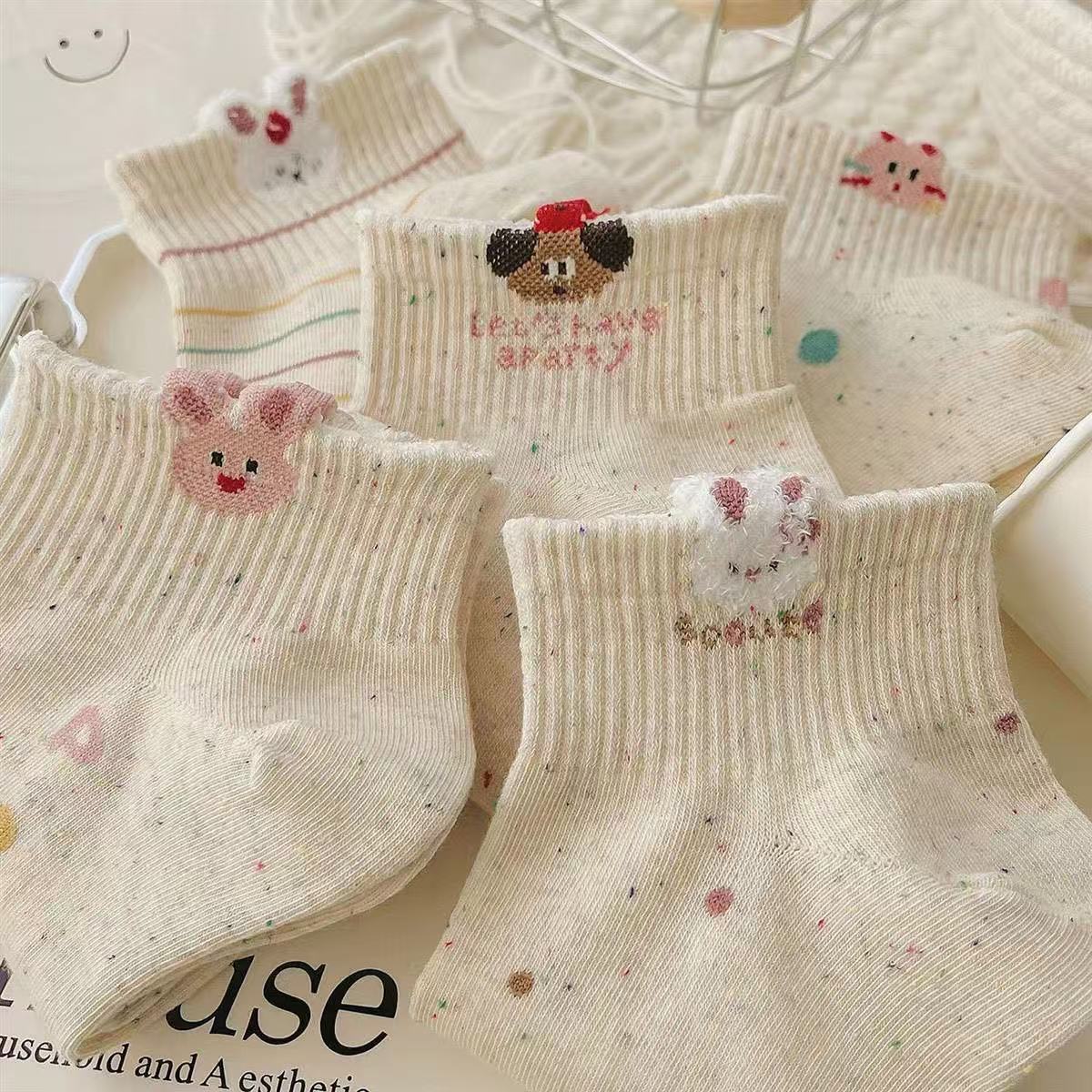 여자를위한 양말 여름 얇은 아카데미 스타일 달콤한 짧은 양말 일본 스타일 귀여운 자수 동물 스타일 양말