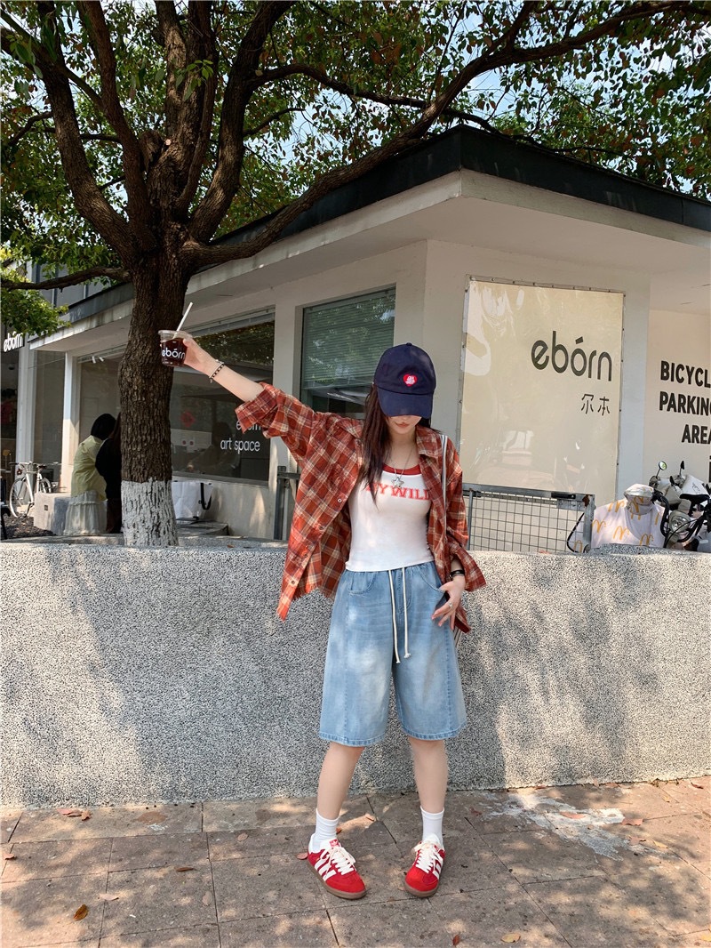【漫游系牛仔A字五分裤|把云朵穿在腿上】