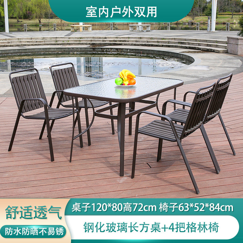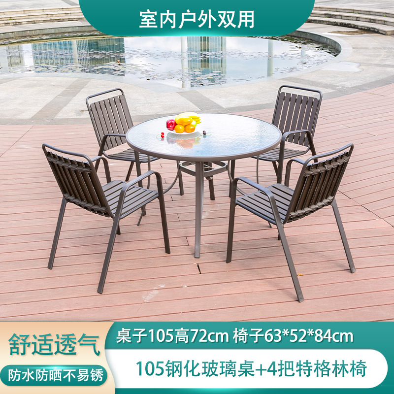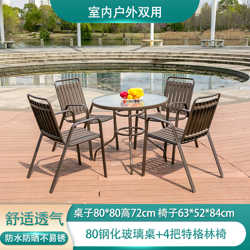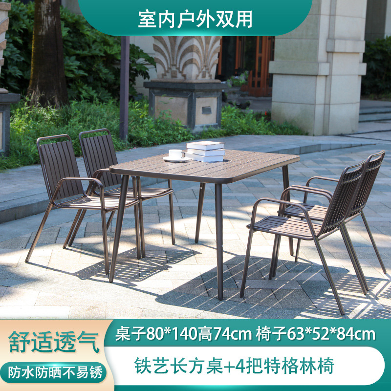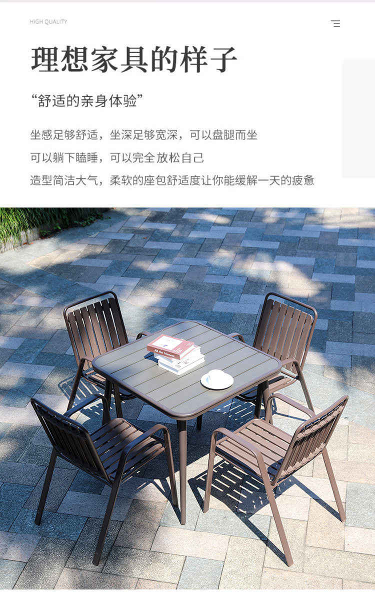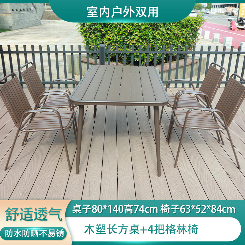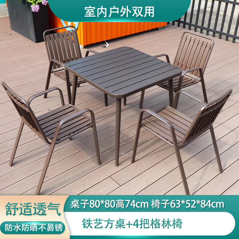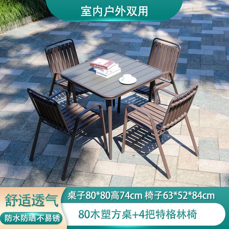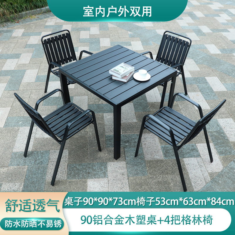 • 90 알루미늄 합금 목재 플라스틱 정사각형 테이블 + 의자 4개