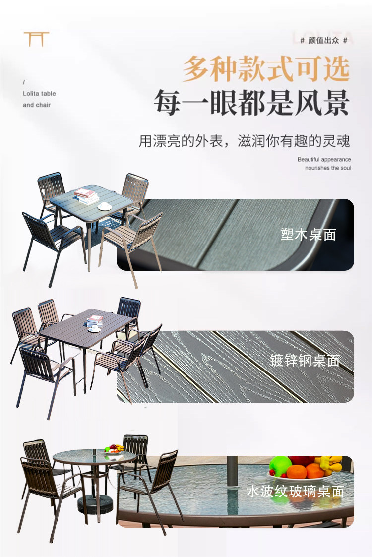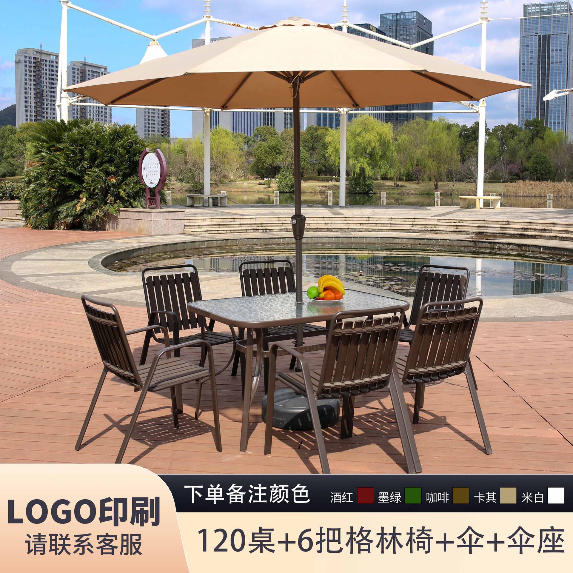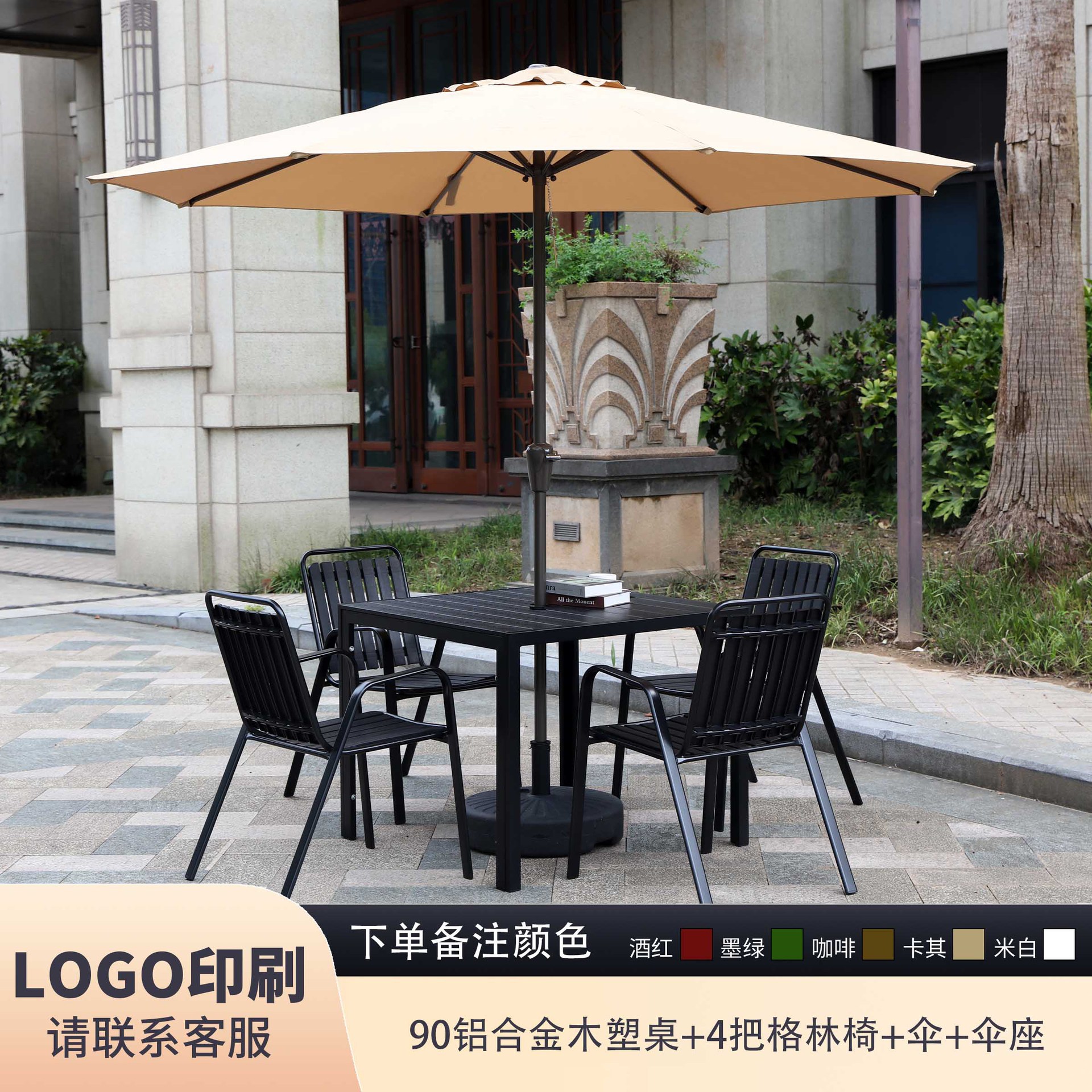 • 90 알루미늄 합금 목재 플라스틱 정사각형 테이블 + 의자 4개 + 우산