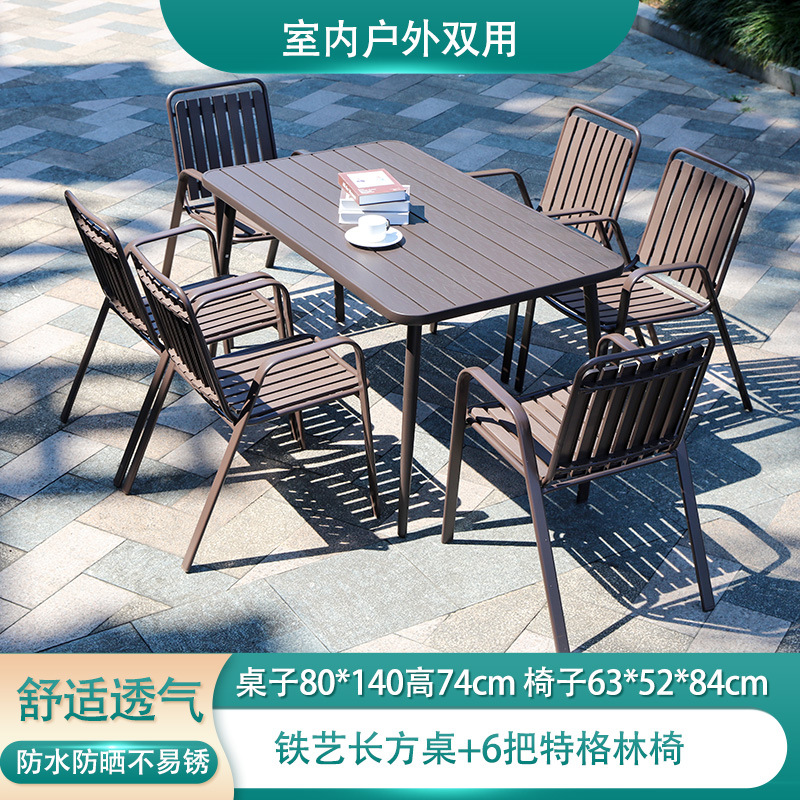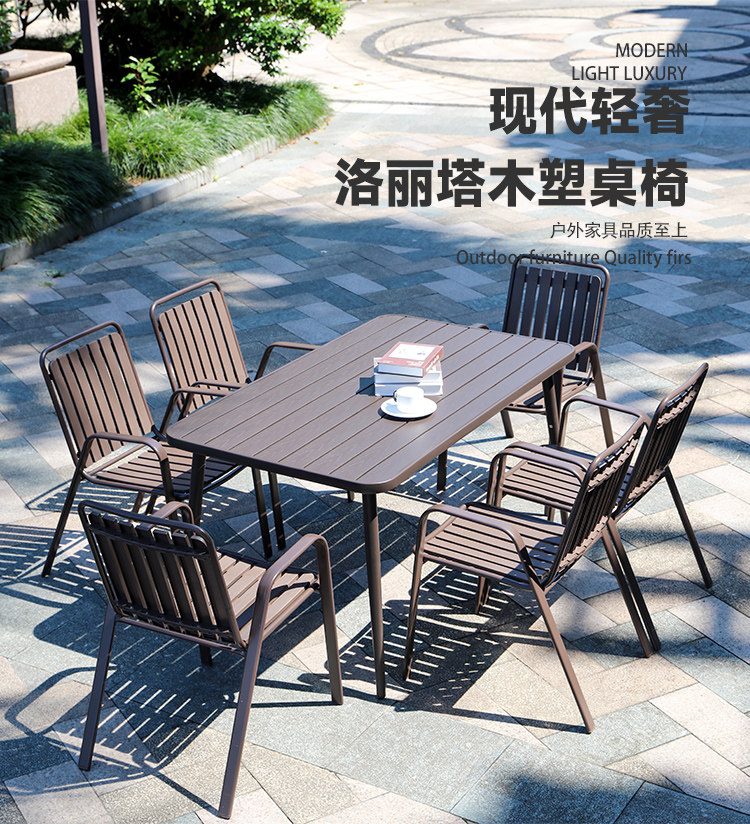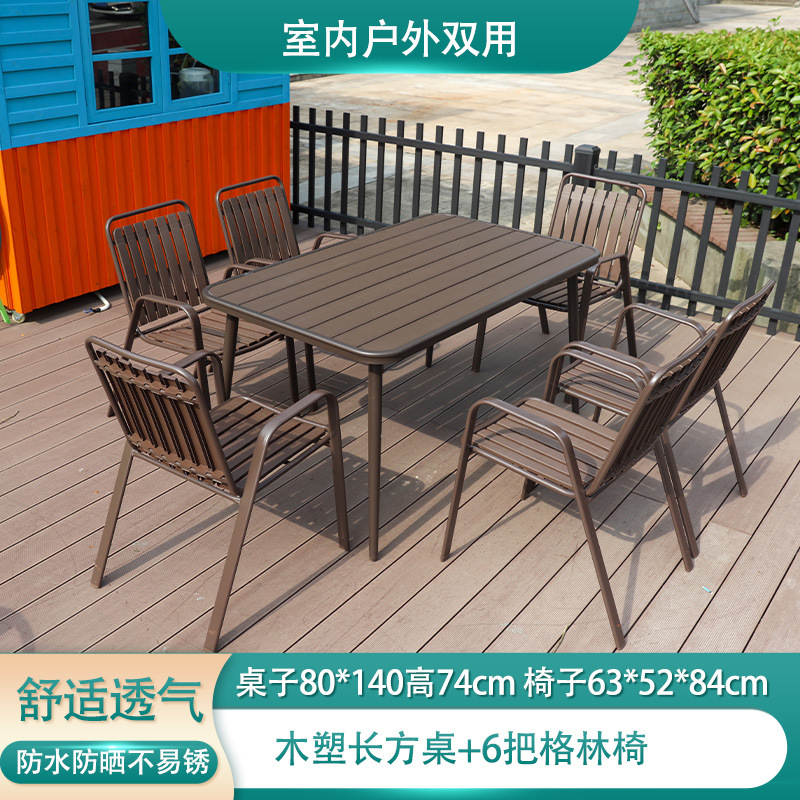 • 140 목재 플라스틱 테이블 + 의자 6개