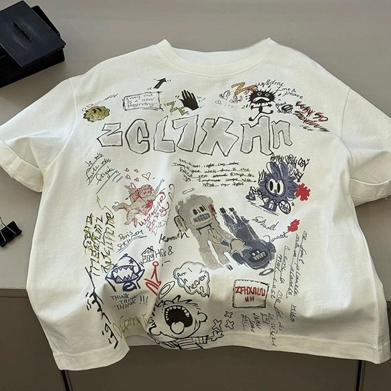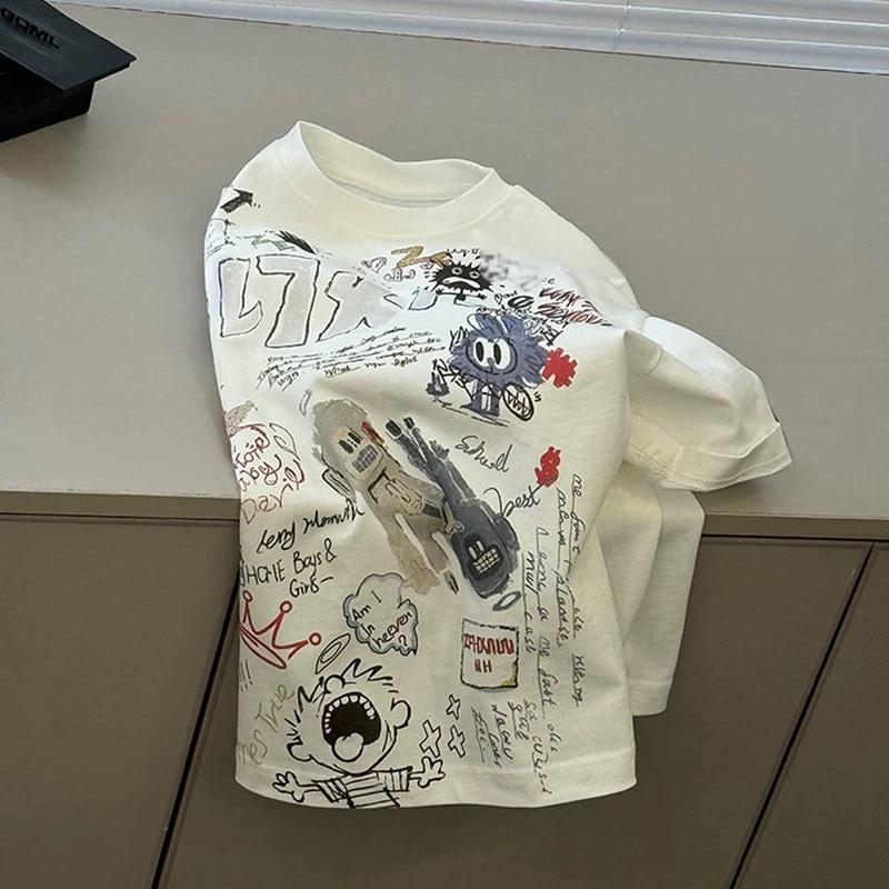 어린이 낙서 반팔 티셔츠 2025 여름 소년 라운드 넥 캐주얼 티셔츠 중대형 아동상의 베이비 다용도 반팔 티셔츠