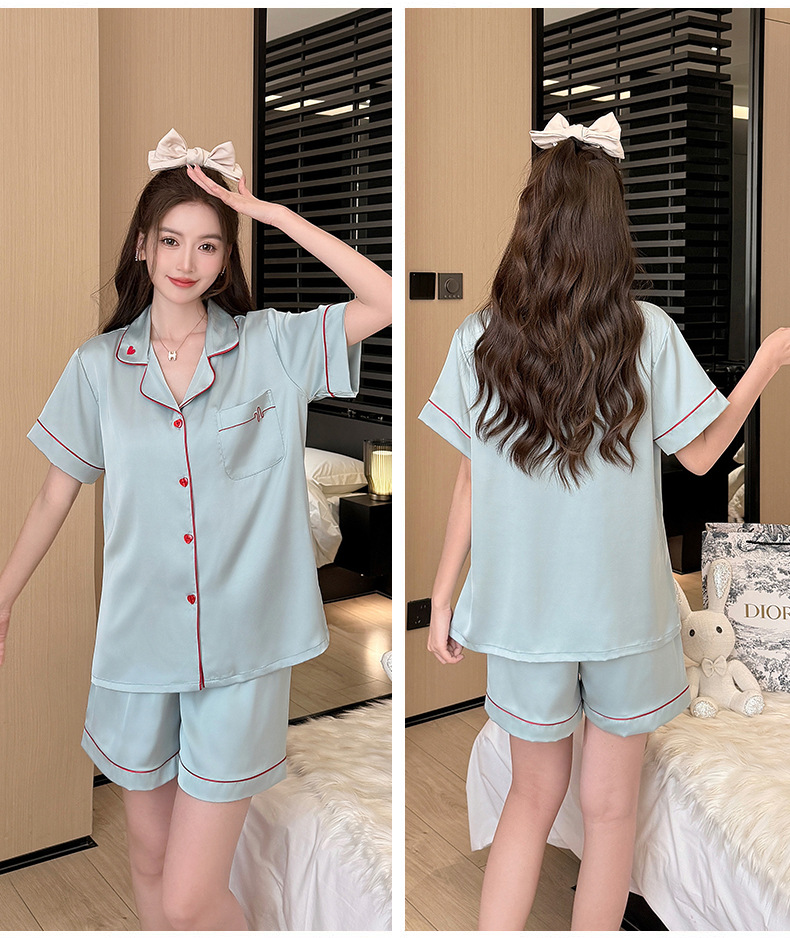 [아이스실크] 새 아이스실크 파자마 여성 여름 달콤한 반팔 투피스 쿨 루즈홈 옷스토어 가기