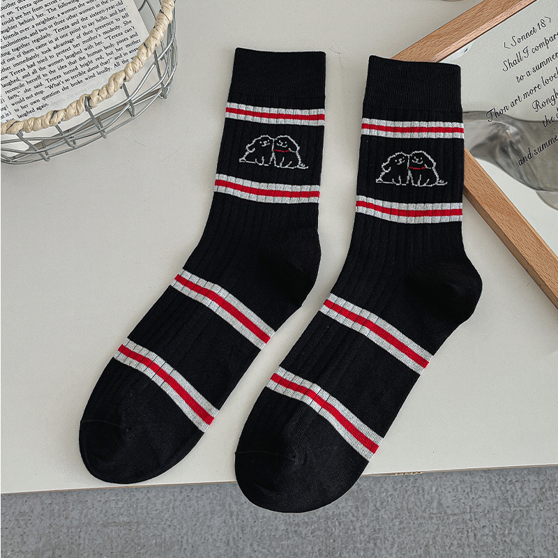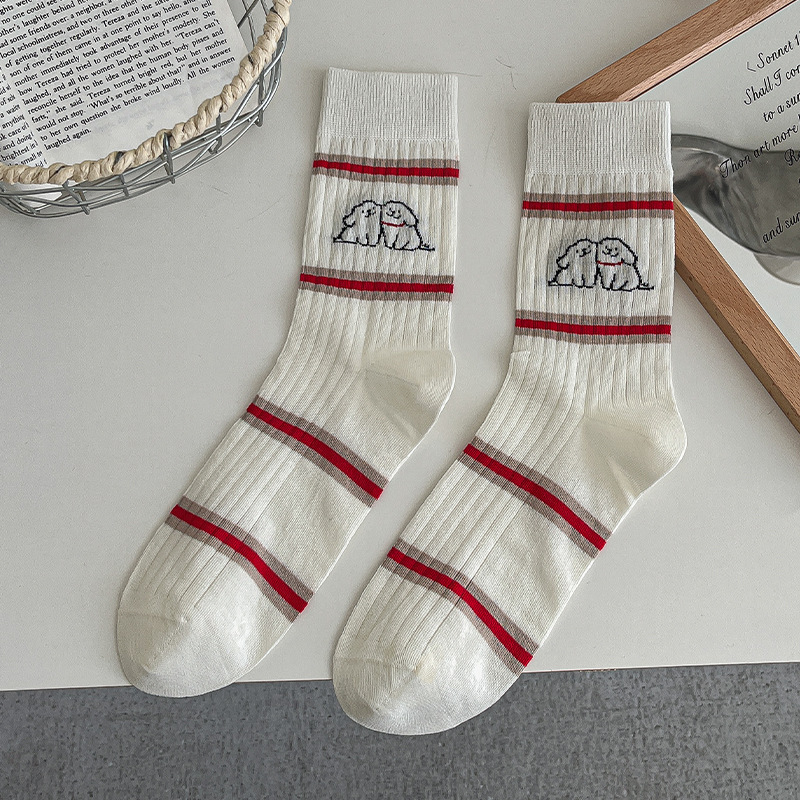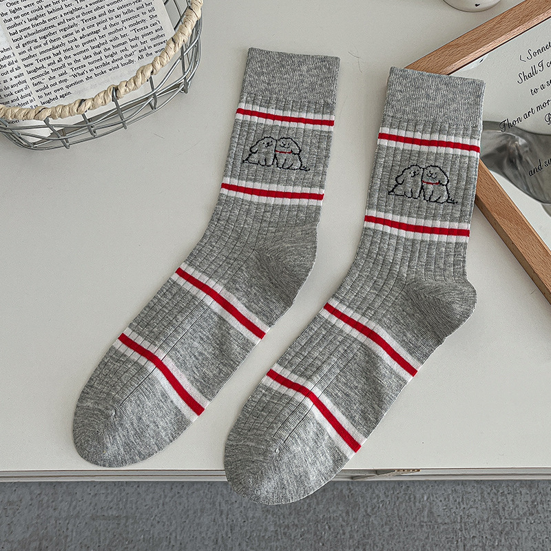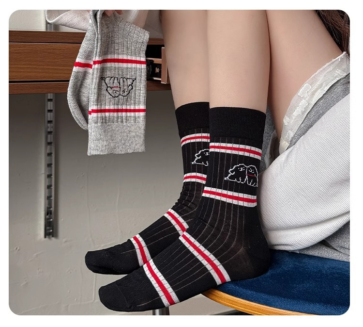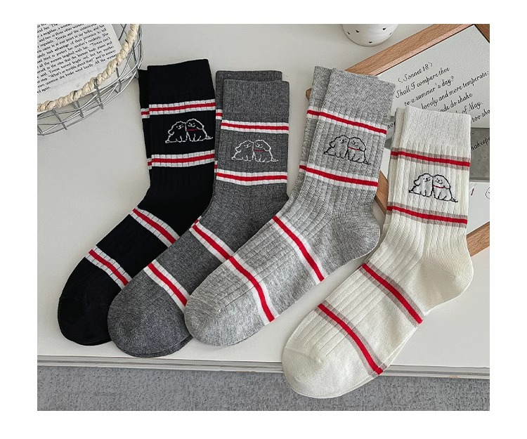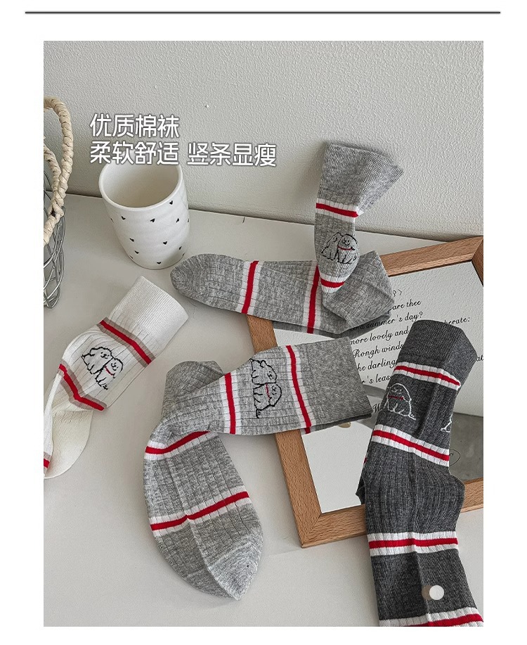 양말 여성의 봄과 여름 얇은 순면 중간 튜브 양말 줄무늬 만화 강아지 땀 통기성 여름 한국 스택 양말스토어 가기
