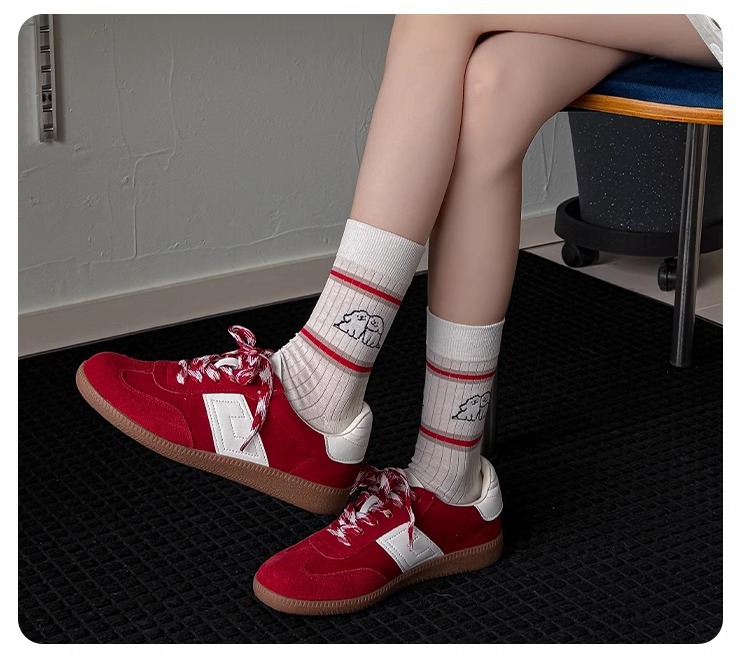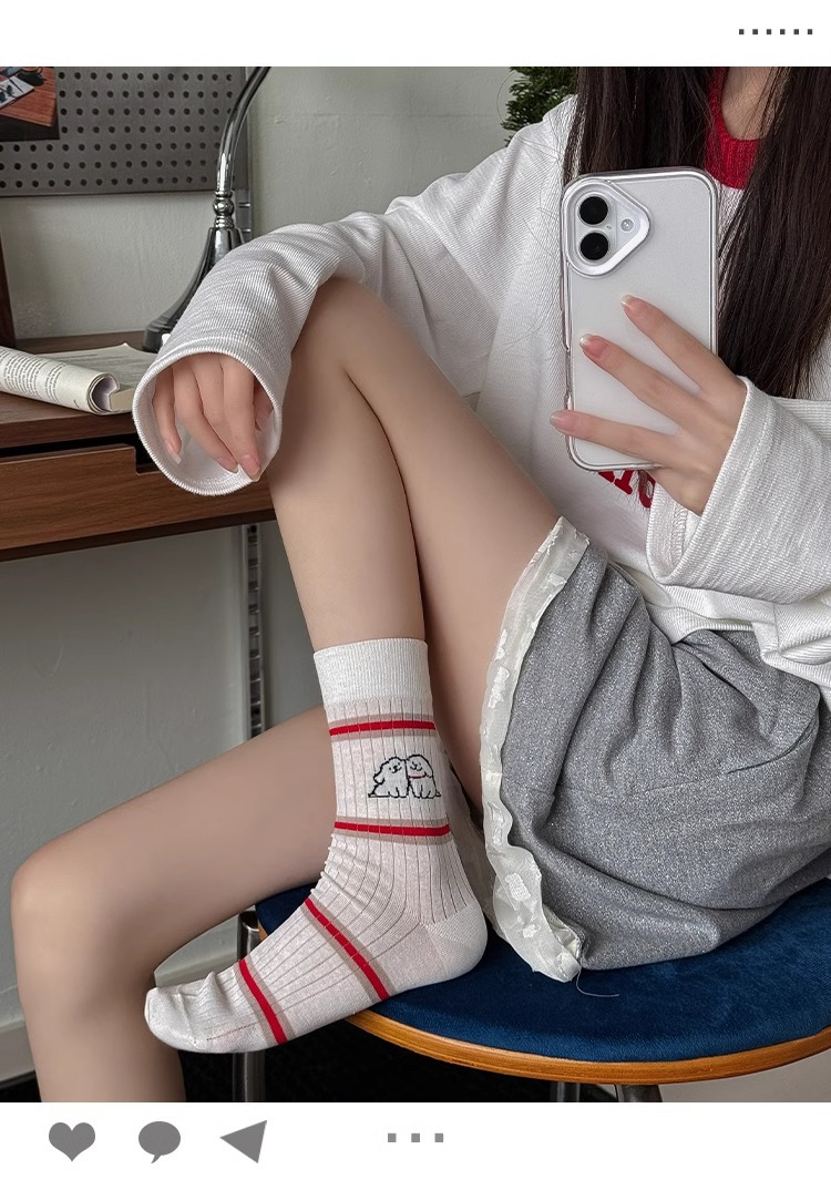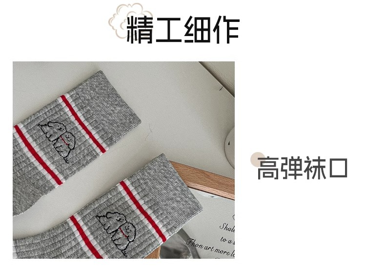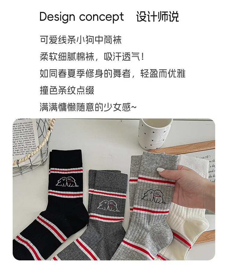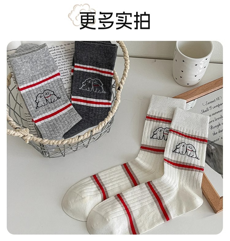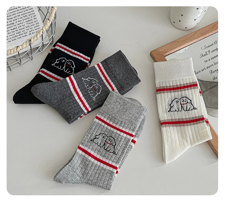 양말 여성의 봄과 여름 얇은 순면 중간 튜브 양말 줄무늬 만화 강아지 땀 통기성 여름 한국 스택 양말스토어 가기
