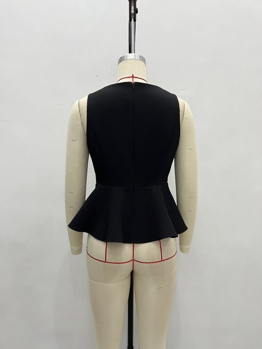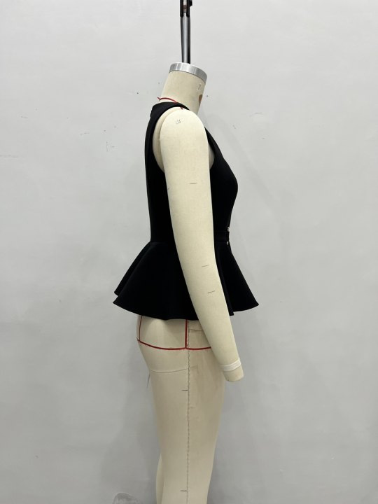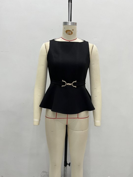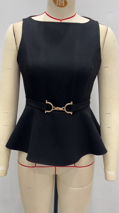 여름 신상 여성 의류, 전문적인 조끼, 우아한 라운드넥, 민소매, 허리 조절, 패셔너블하고 푹신한 슬리밍 탑