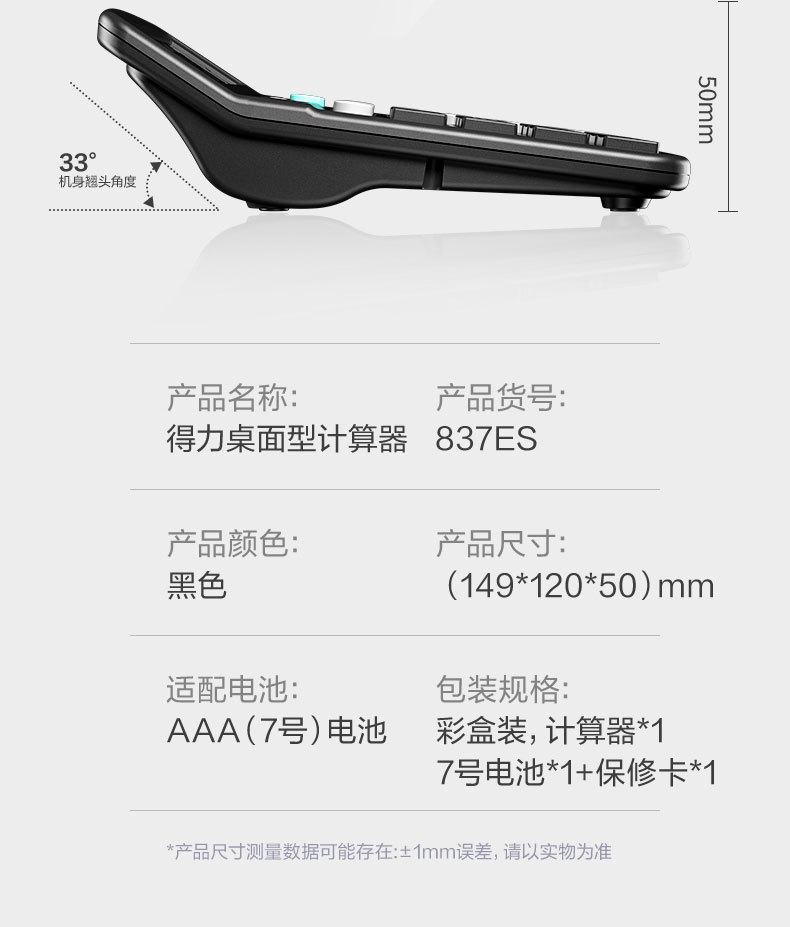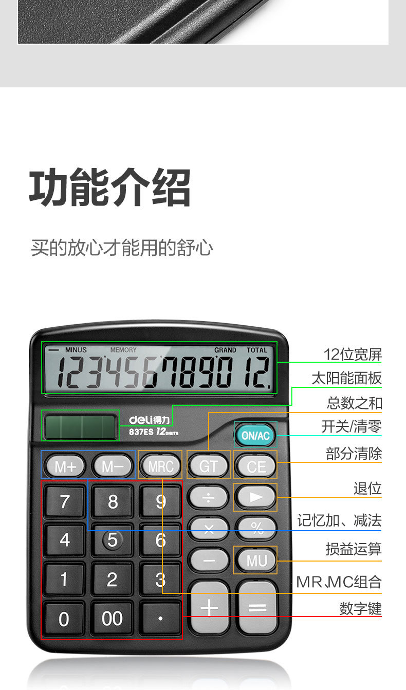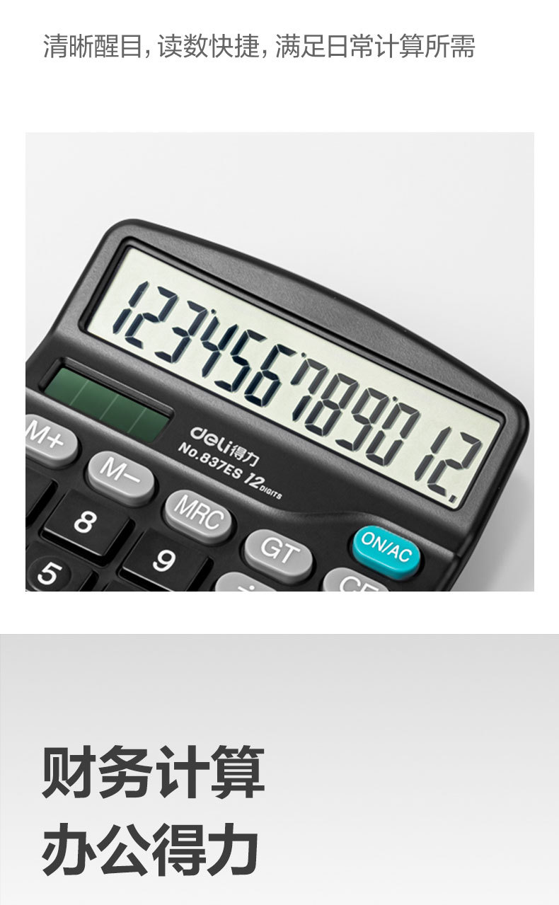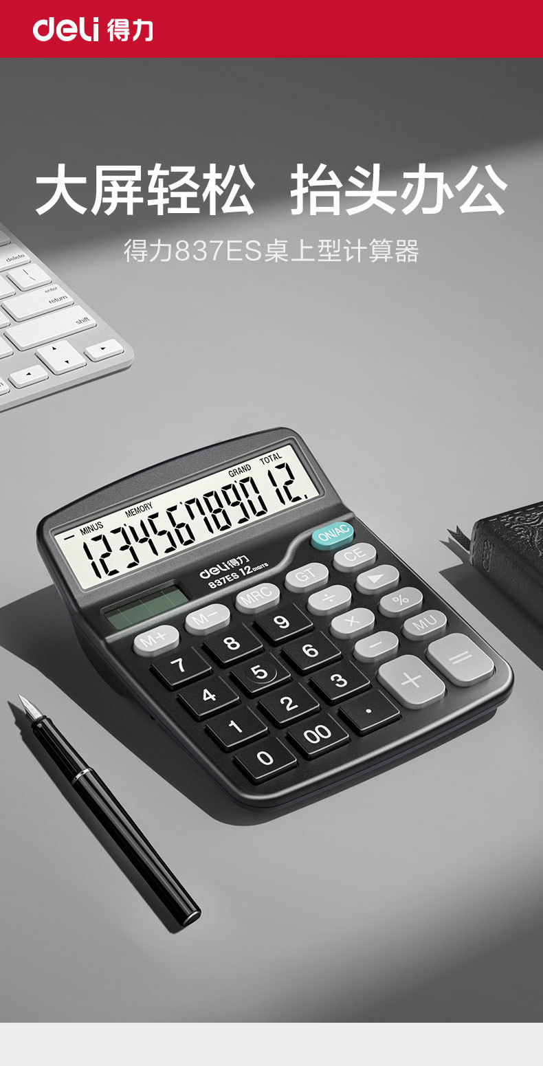 델리 837ES 계산기 도매 사무실 책상 12 자리 대형 스크린 태양열 이중 전원 컴퓨터 문구스토어 가기