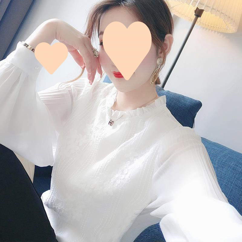 여성용 흰색 셔츠 러플 칼라 2025 봄, 가을 새로운 한국 스타일 쉬폰 셔츠 여성스러운 긴팔 탑 트렌디스토어 가기