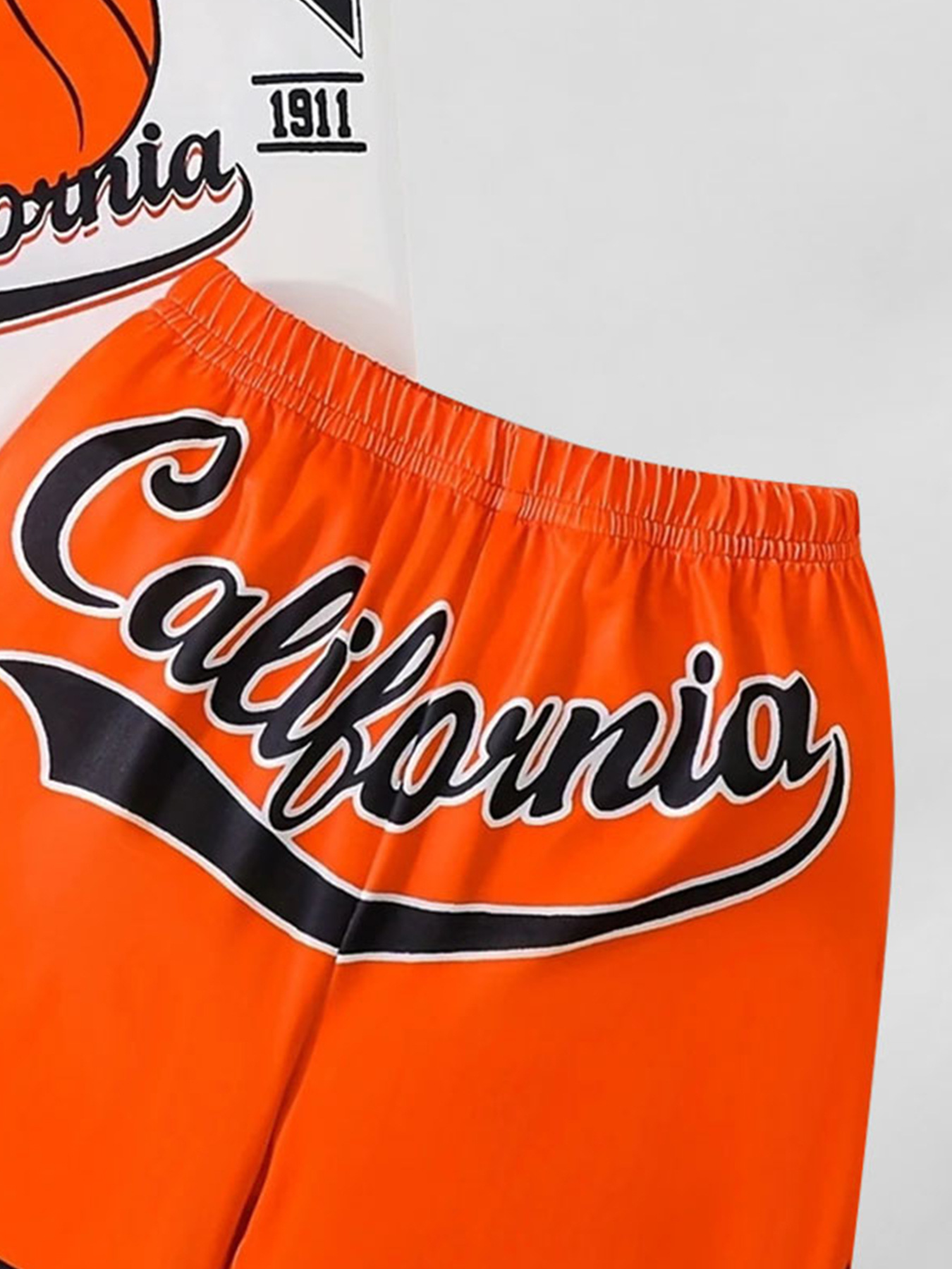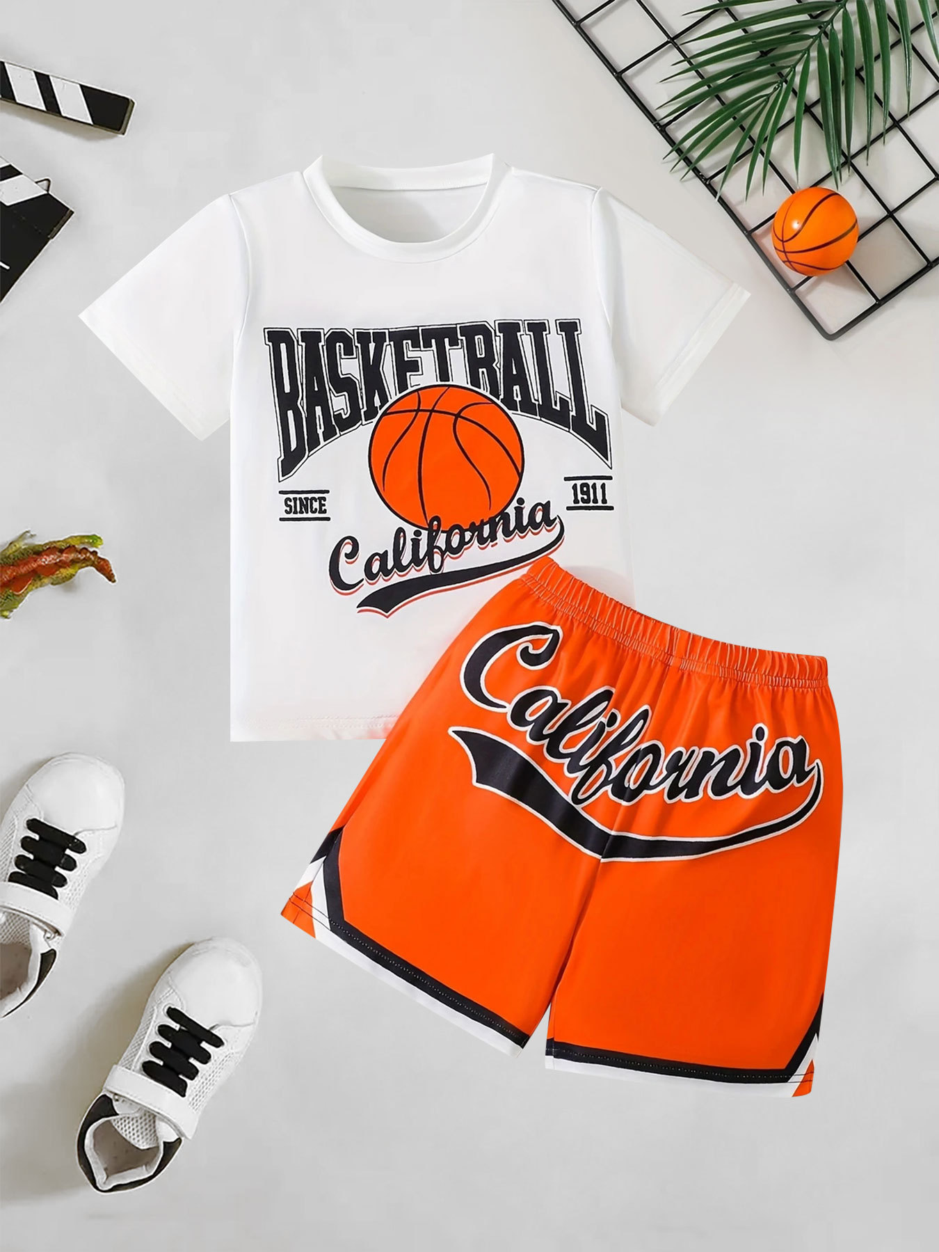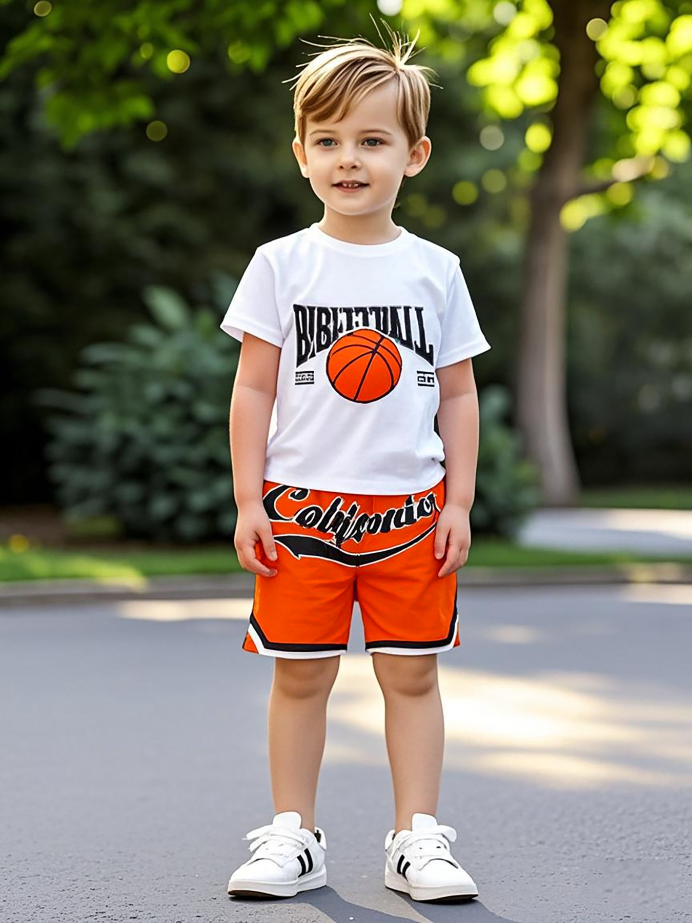 크로스보더 남아 투피스 캐주얼웨어, 스포츠 레터 볼 프린트 다용도 반팔 티셔츠와 반바지, 편안함