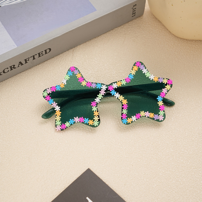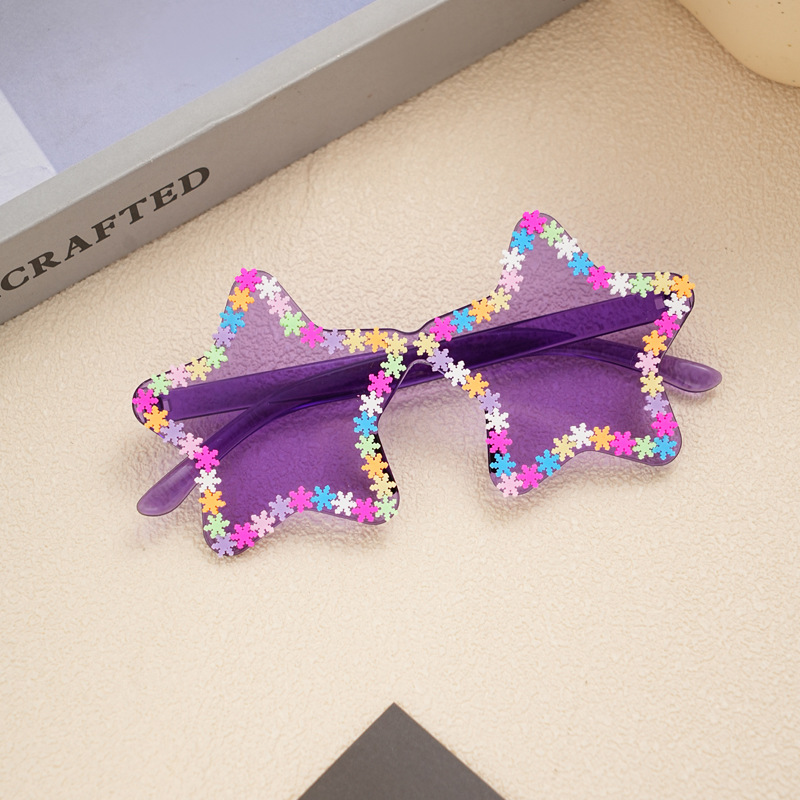 새로운 프레임이없는 다섯개 별 어린이 선글라스 맞춤형 트렌드 과장된 아기 선글라스 컬러 눈송이 어린이 안경