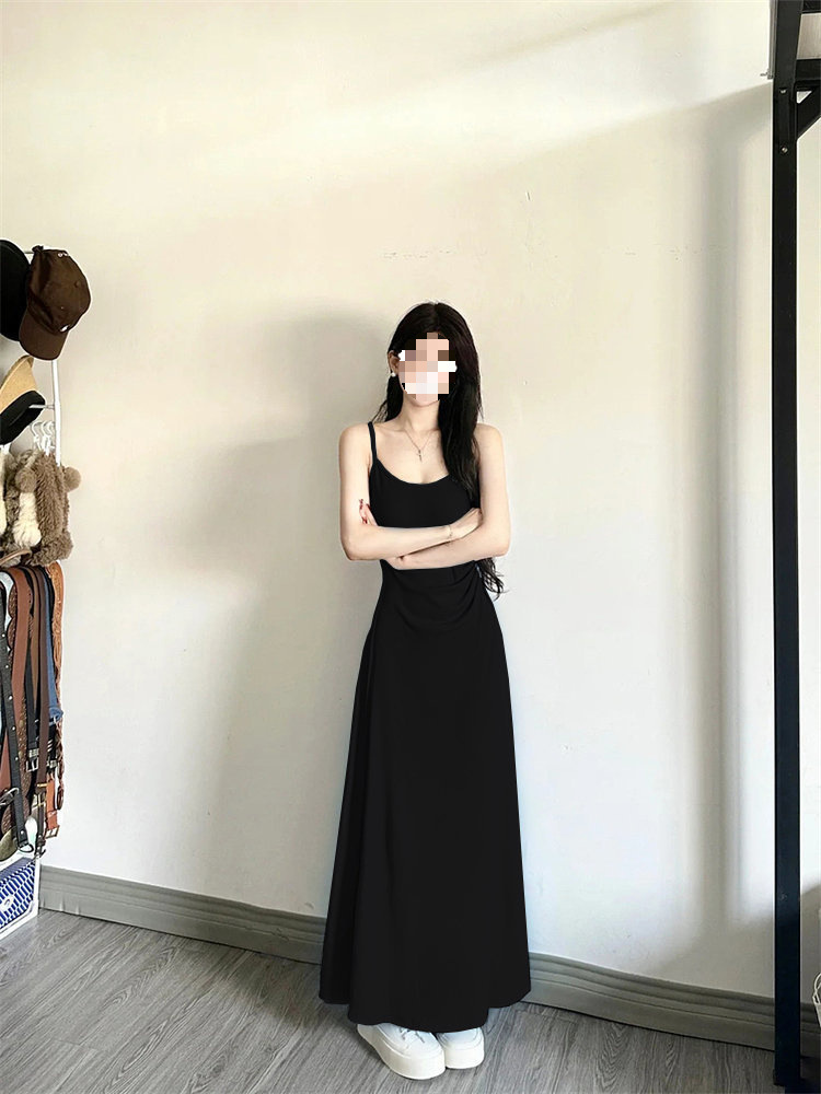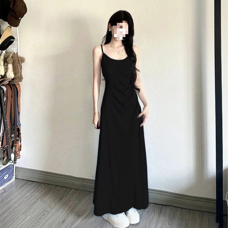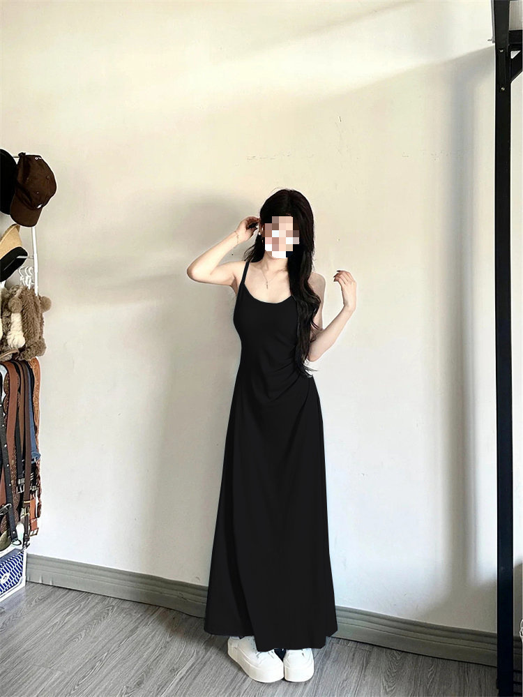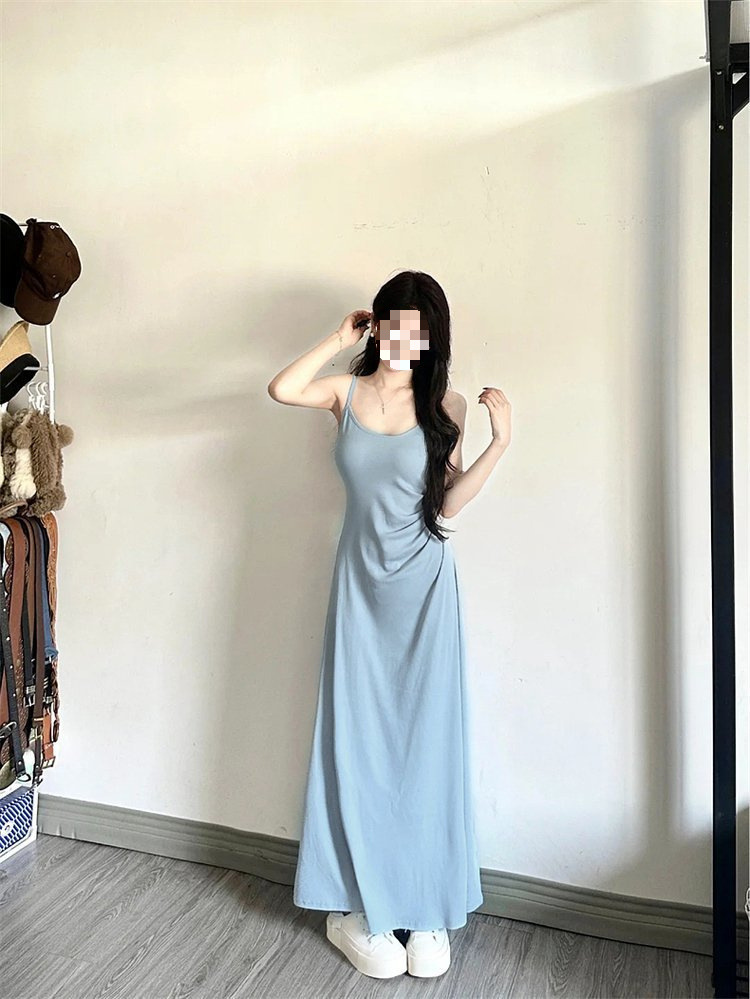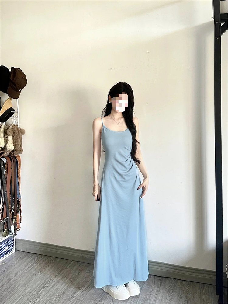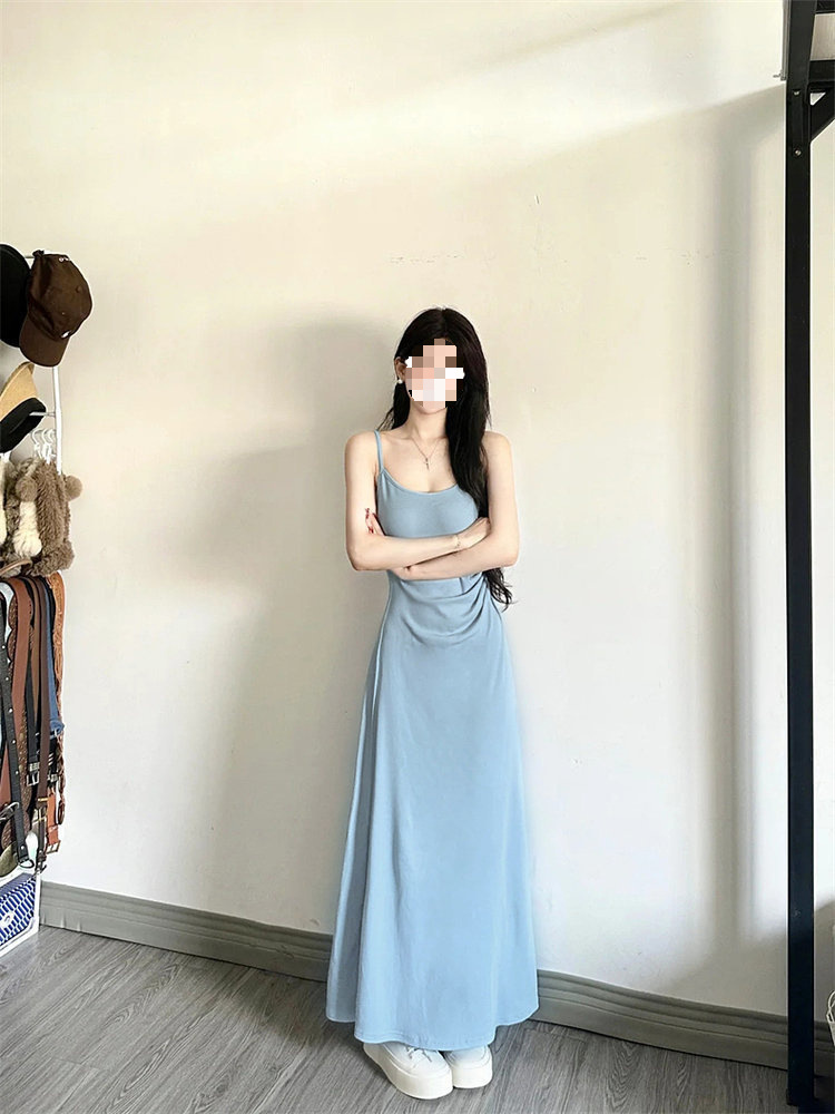 2025 새로운 달콤하고 매운 니트 원피스 여성용 여름 프랑스 스타일 슬링 긴 원피스 슬림 핏 우아한 휴가 치마스토어 가기