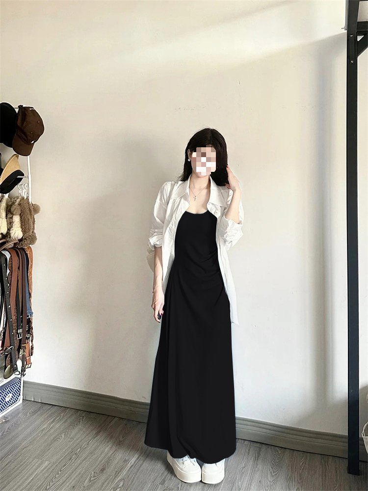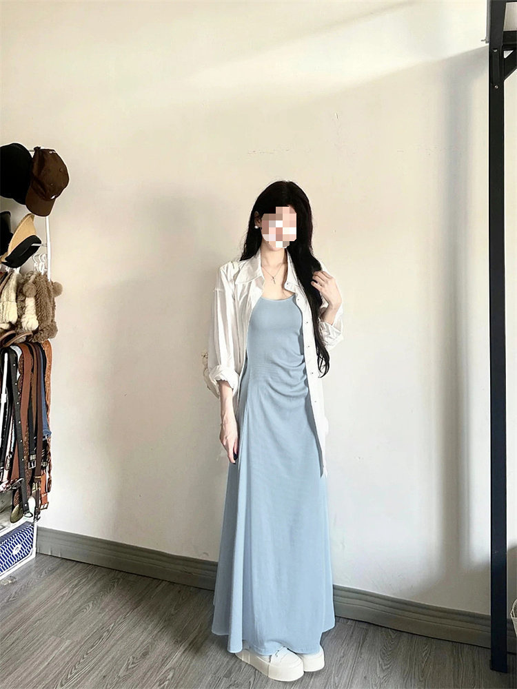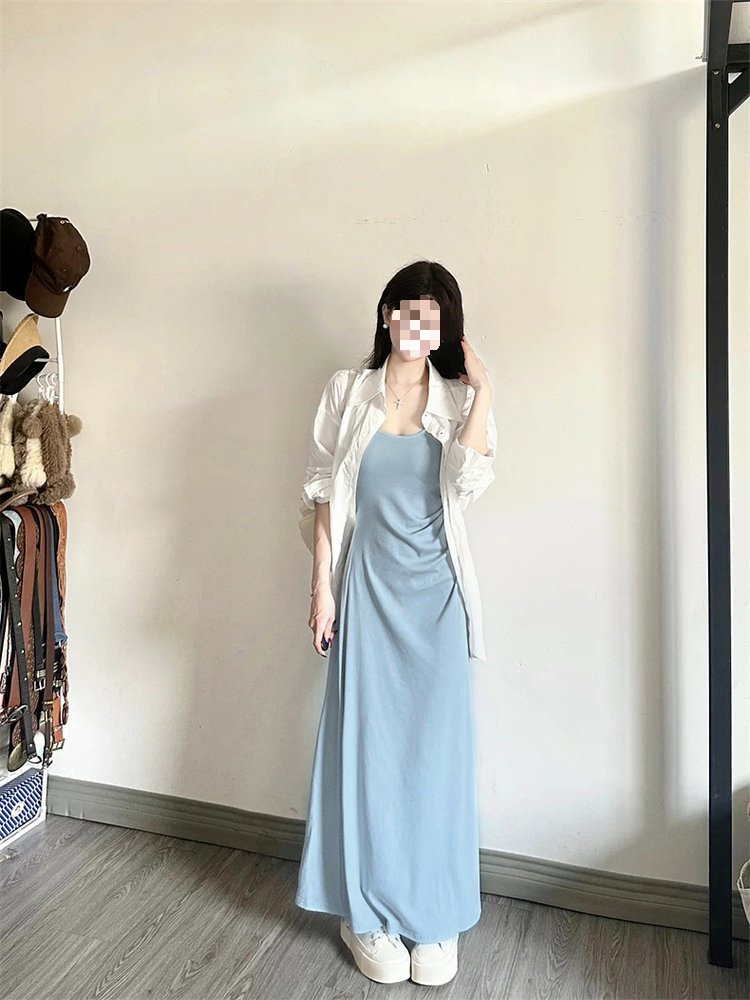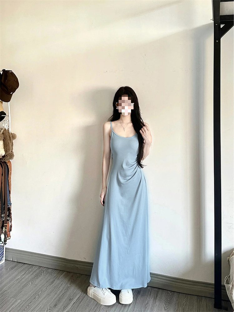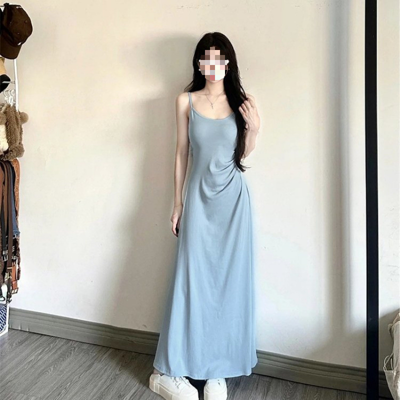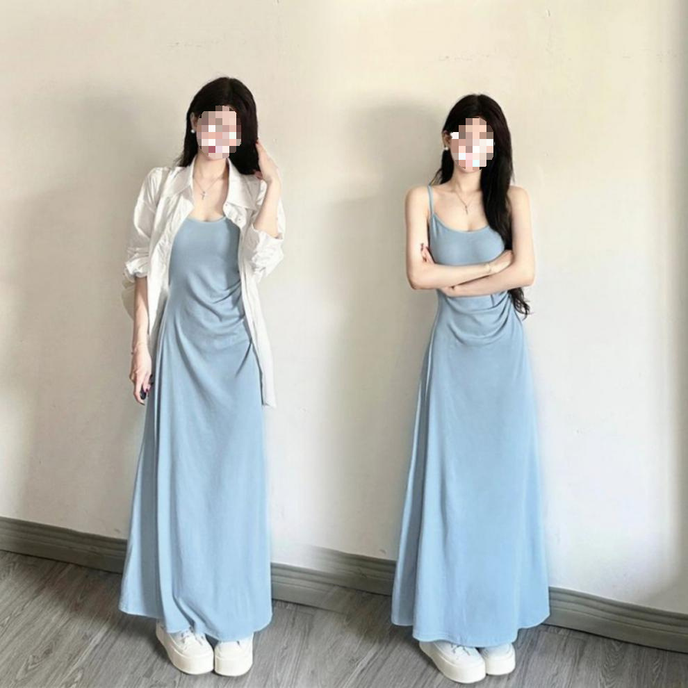 2025 새로운 달콤하고 매운 니트 원피스 여성용 여름 프랑스 스타일 슬링 긴 원피스 슬림 핏 우아한 휴가 치마스토어 가기