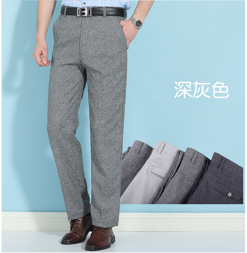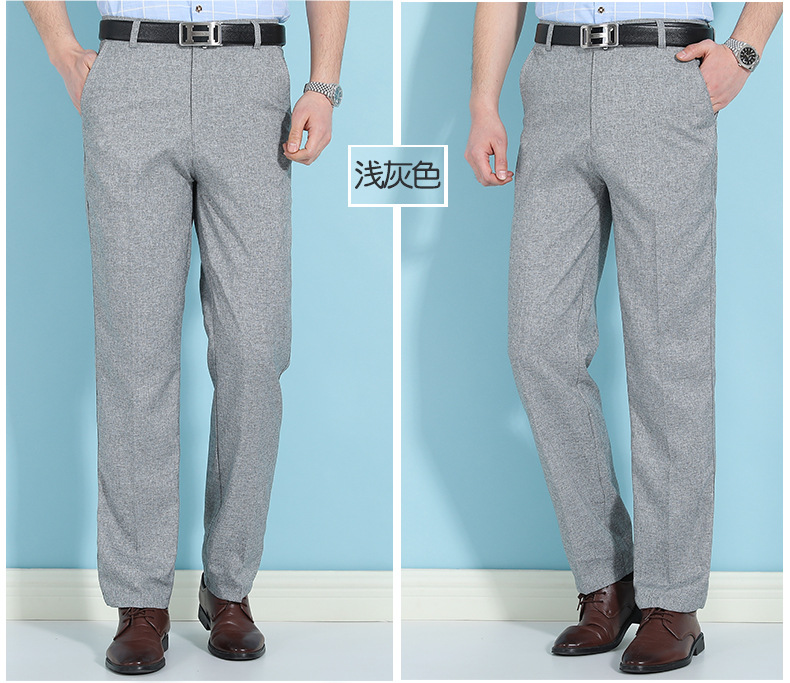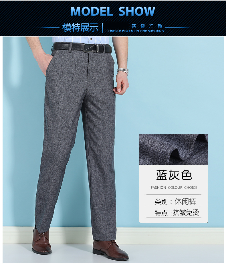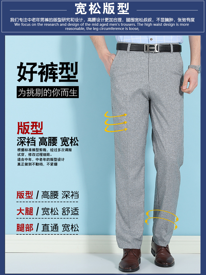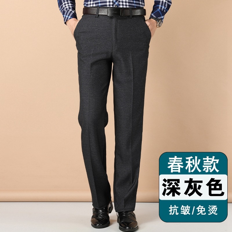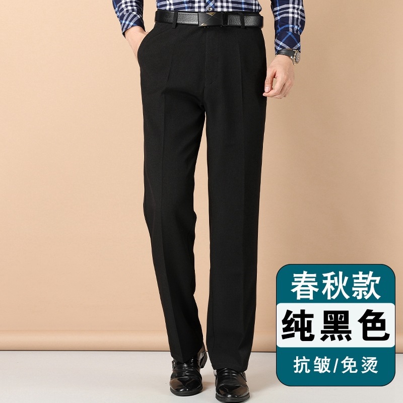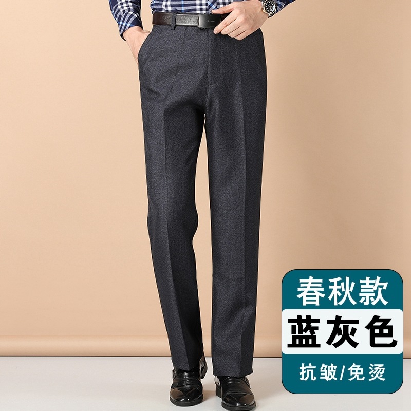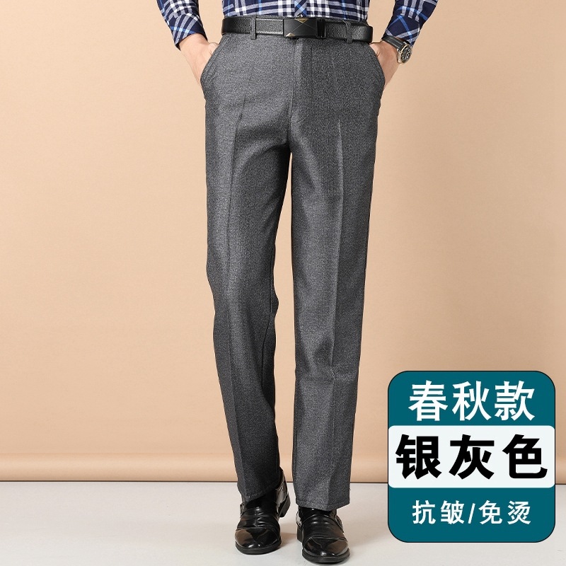 얇은 세트 바지 중년 남성 높은 허리 긴 바지 가을과 겨울 두꺼운 스트레치 안티 주름 남성 바지 아버지 느슨한 봄과 가을
