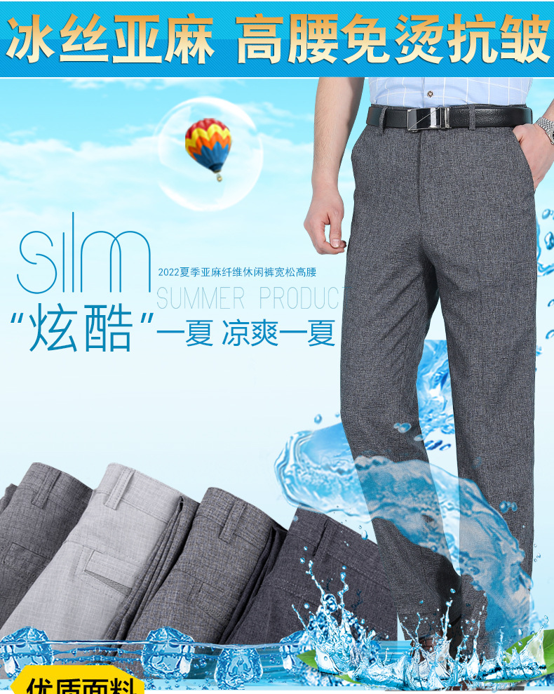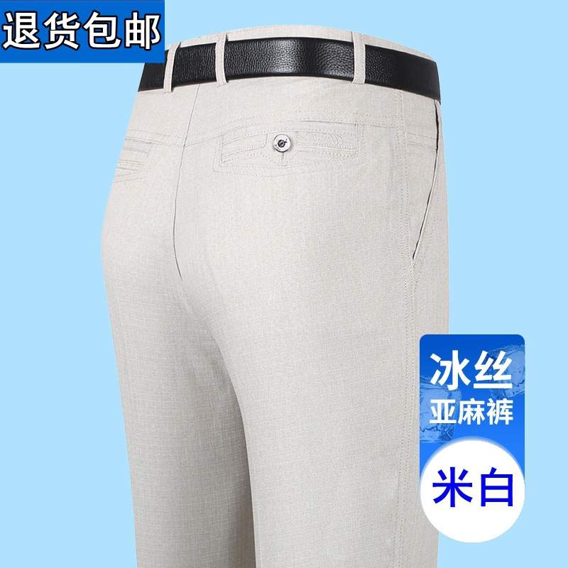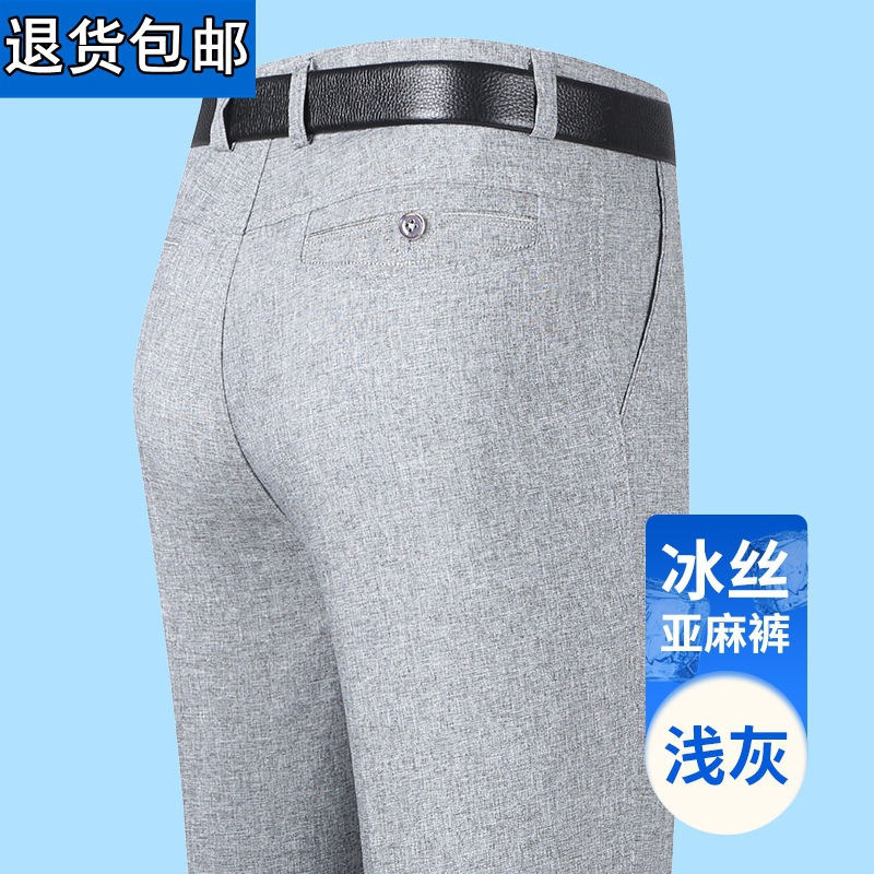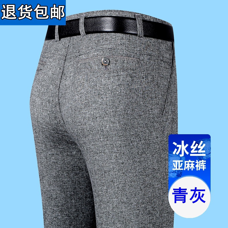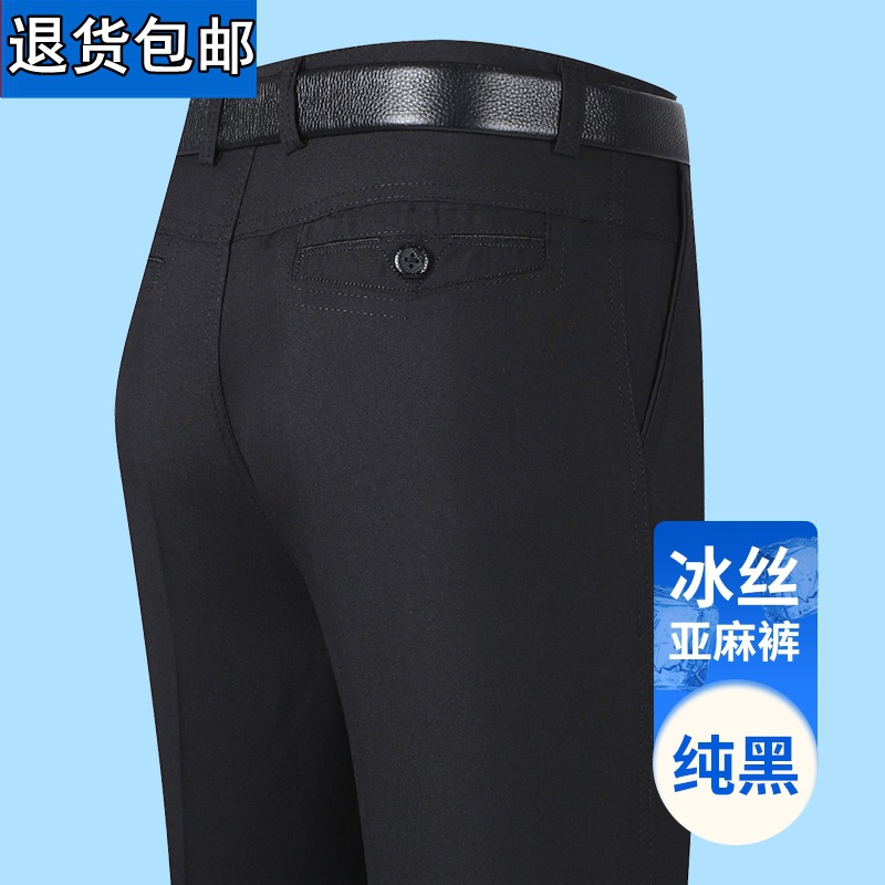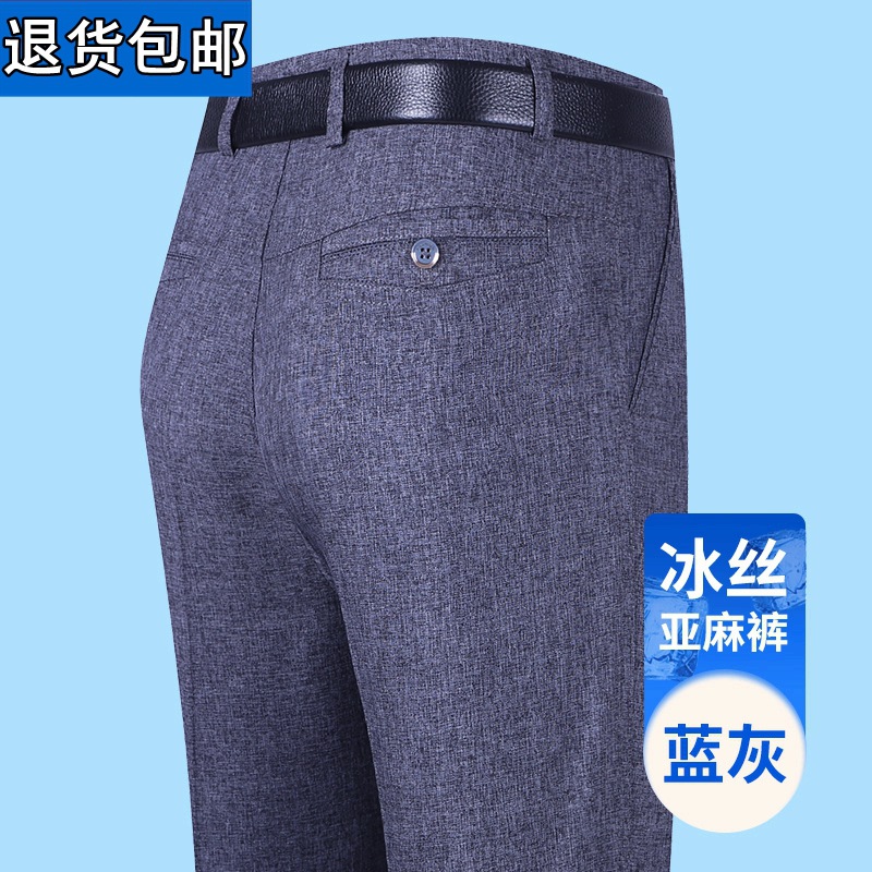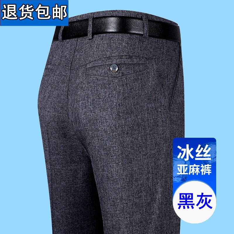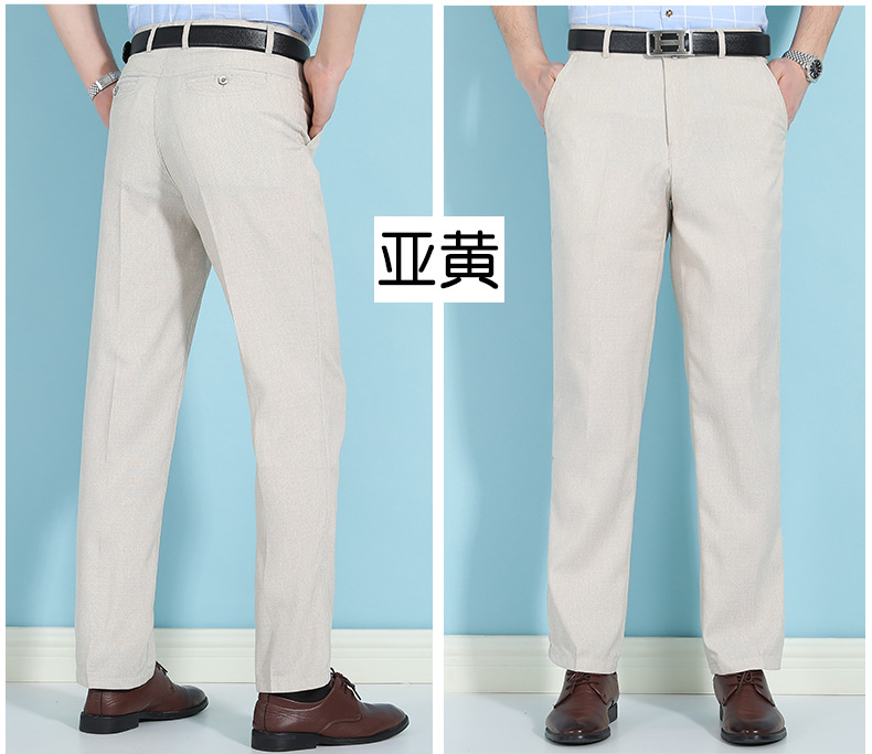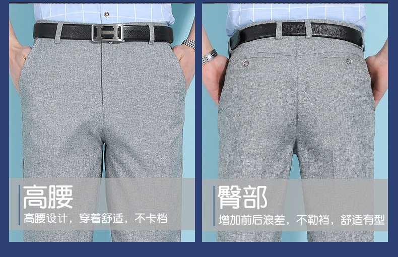얇은 세트 바지 중년 남성 높은 허리 긴 바지 가을과 겨울 두꺼운 스트레치 안티 주름 남성 바지 아버지 느슨한 봄과 가을