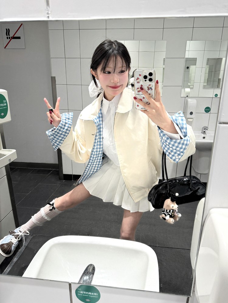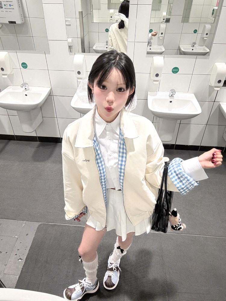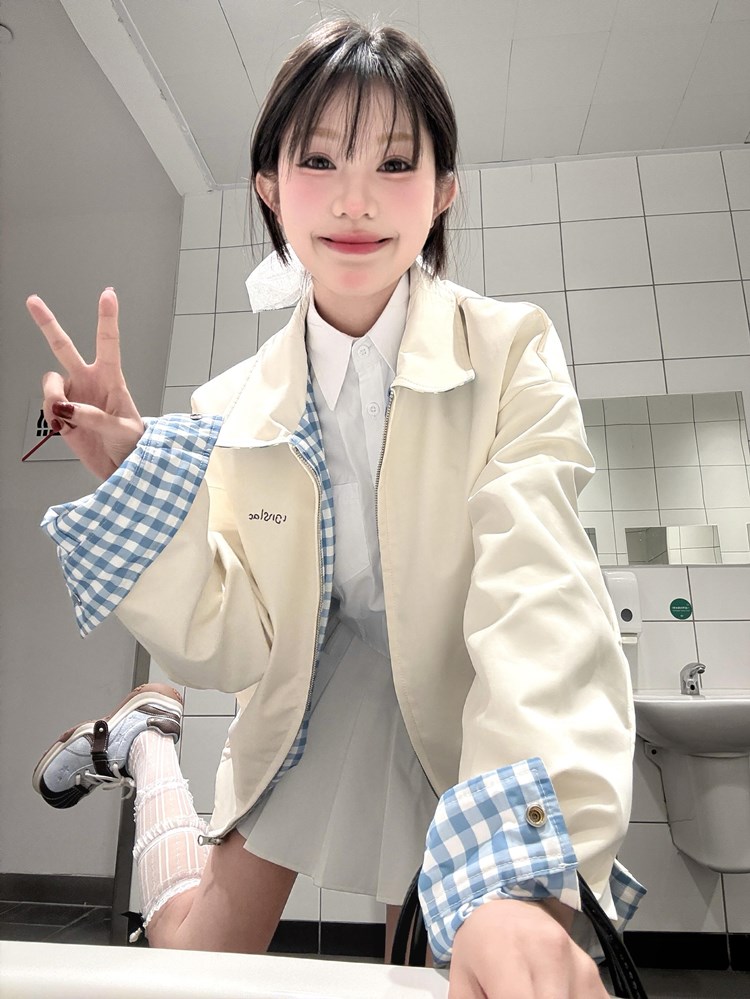 일본식 양면 재킷 여성 봄과 가을 2025 새로운 스타일 느슨한 짧은 lar plaid 재킷 탑스토어 가기