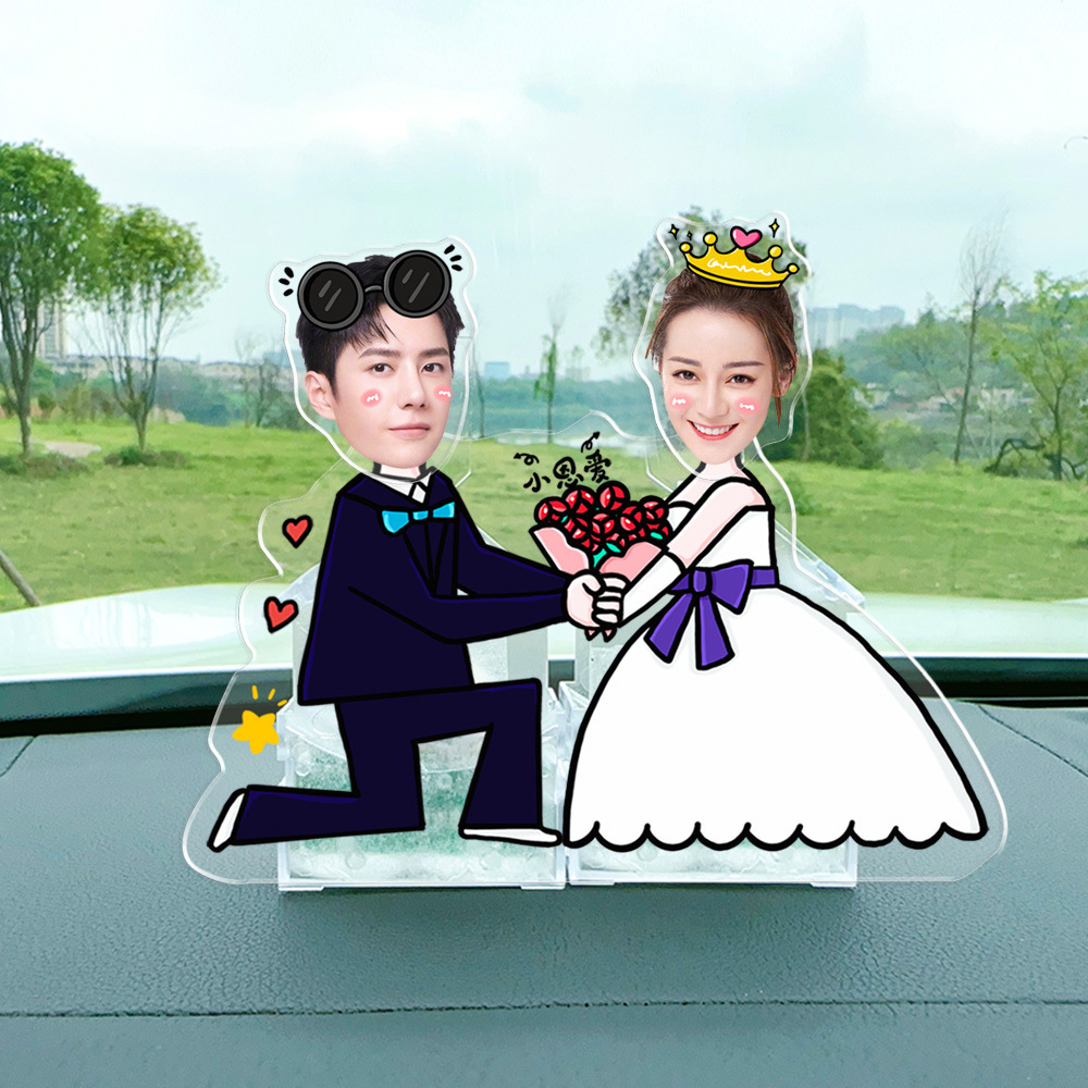 자동차 장식품 diy 태양 자동 떨림 헤드 스탠드 더블 커플 휴머노이드 스탠드 아크릴 크리에이티브스토어 가기