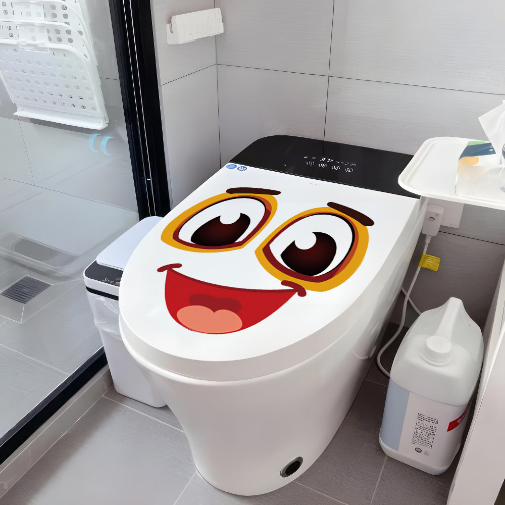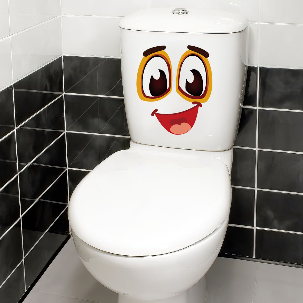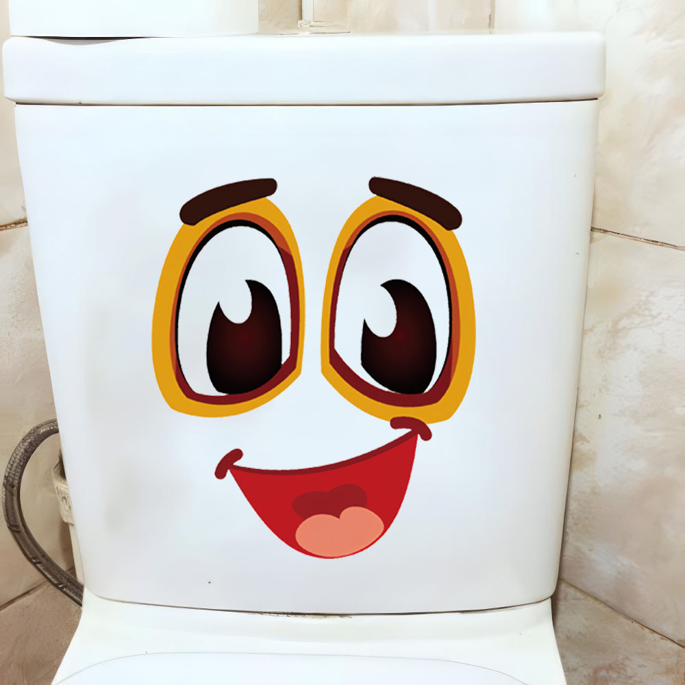 만화 미소 표현 화장실 스티커 장식 욕실 화장실 화장실 자체 접착 그림 이동식 PVC 벽 스티커 벽화