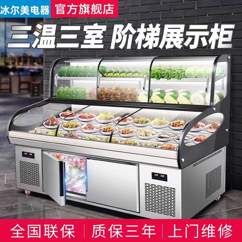 3단계 온도 계단식 얼음 디스플레이 캐비닛, 상업용 호텔 주문 캐비닛, 냉장 및 신선 유지 과일, 해산물, 바비큐