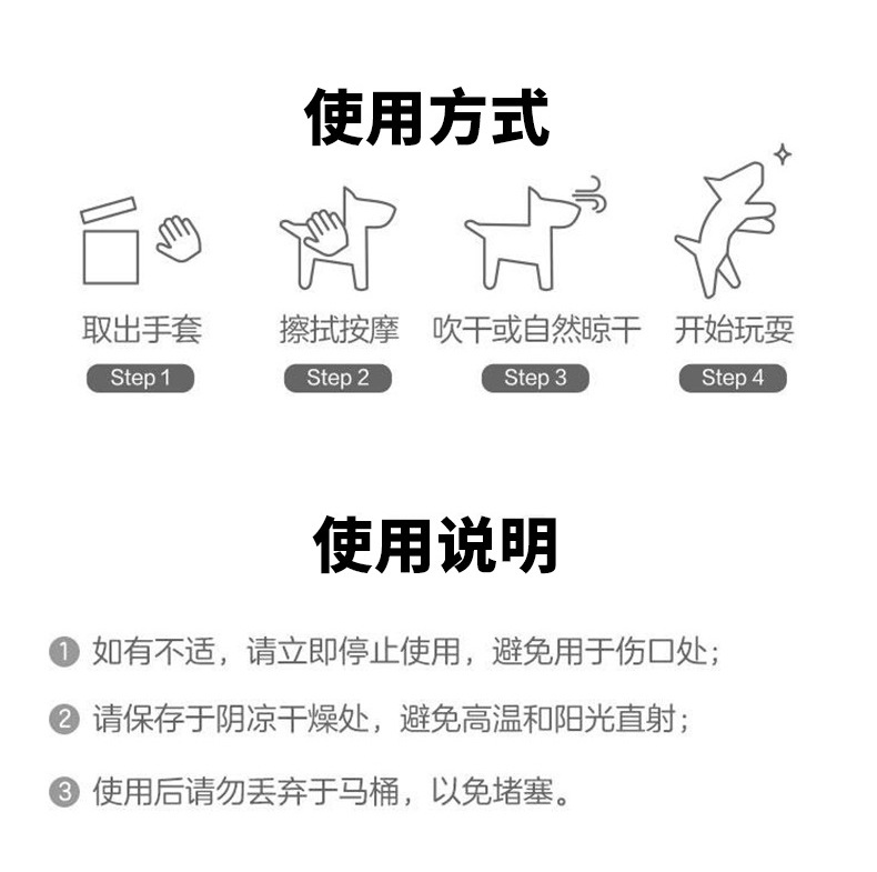 애완동물용 일회용 장갑 고양이 드라이 클리닝 탈취 물티슈 강아지 목욕용 일회용 물티슈 애완동물 청소 장갑스토어 가기