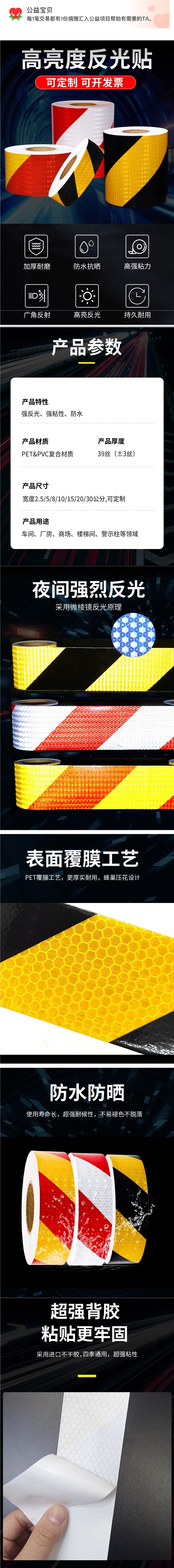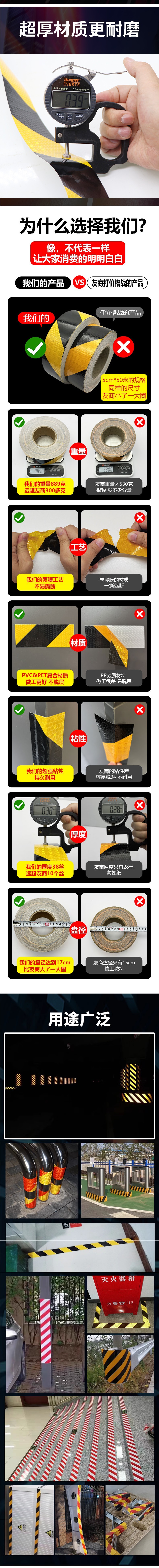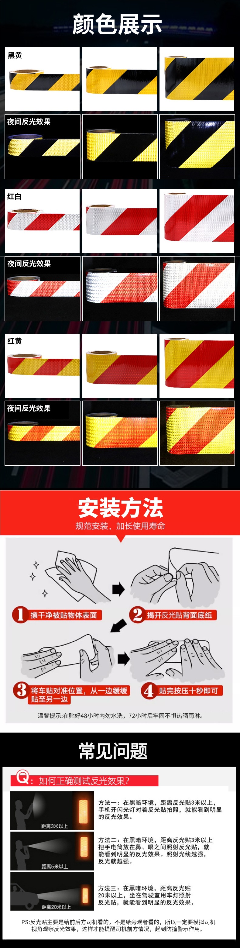 도로 교통 안전의 밤 충돌 방지 경고 스티커 반사 스트립을 정품 검은 색과 노란색 능선 반사 스티커 차고 바닥 스티커